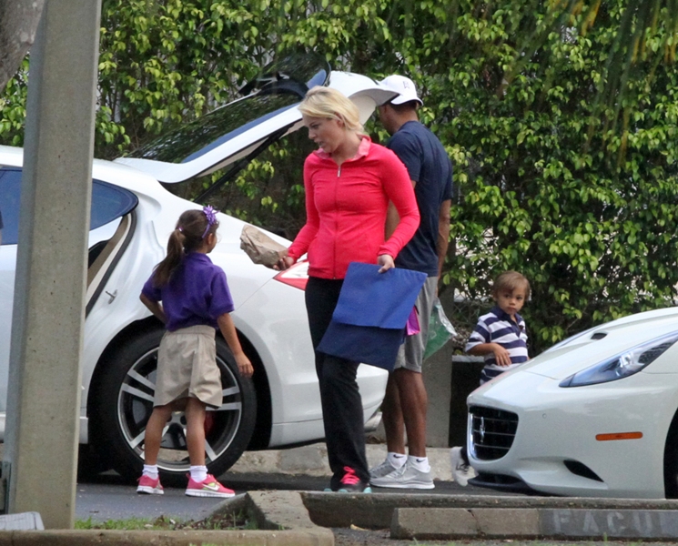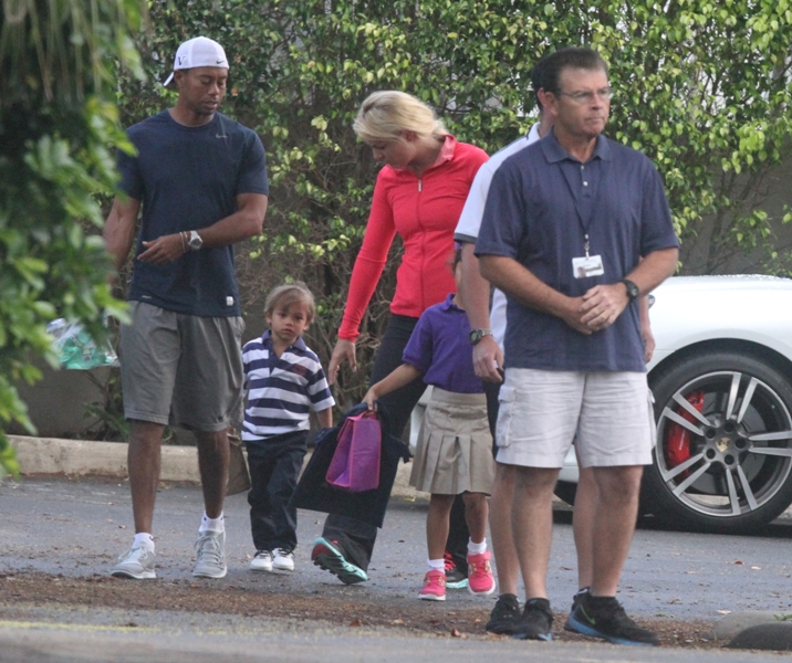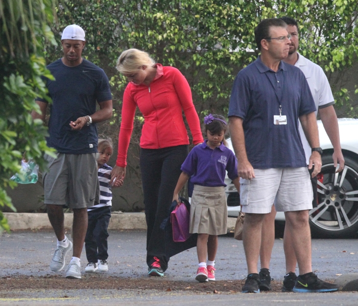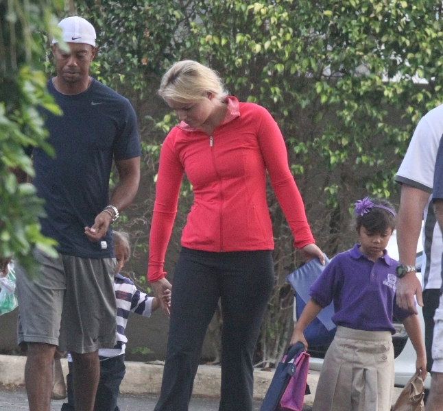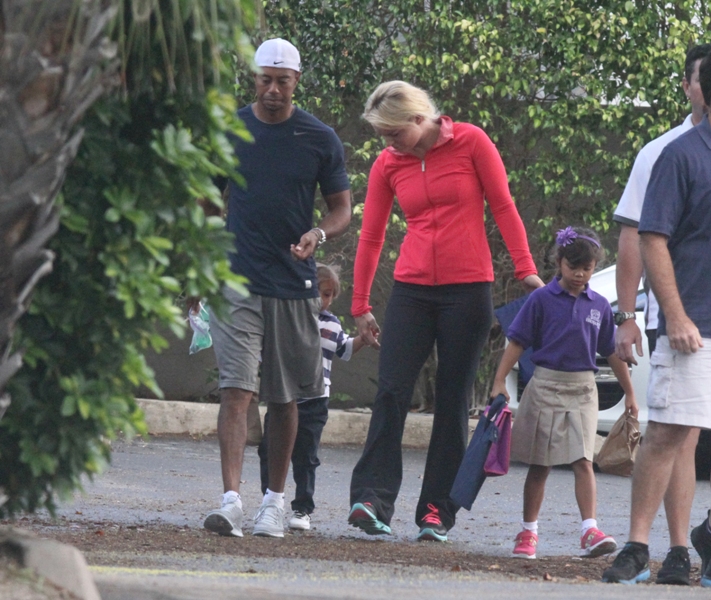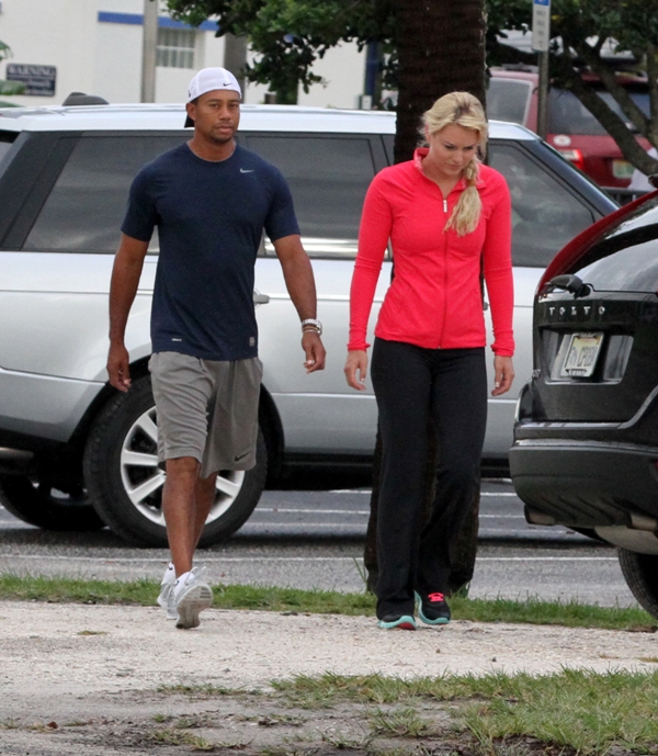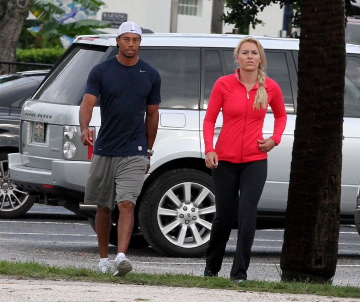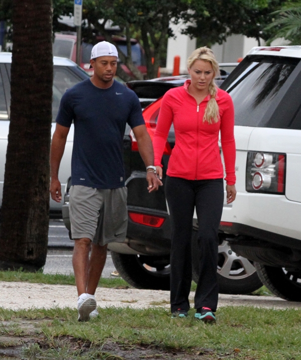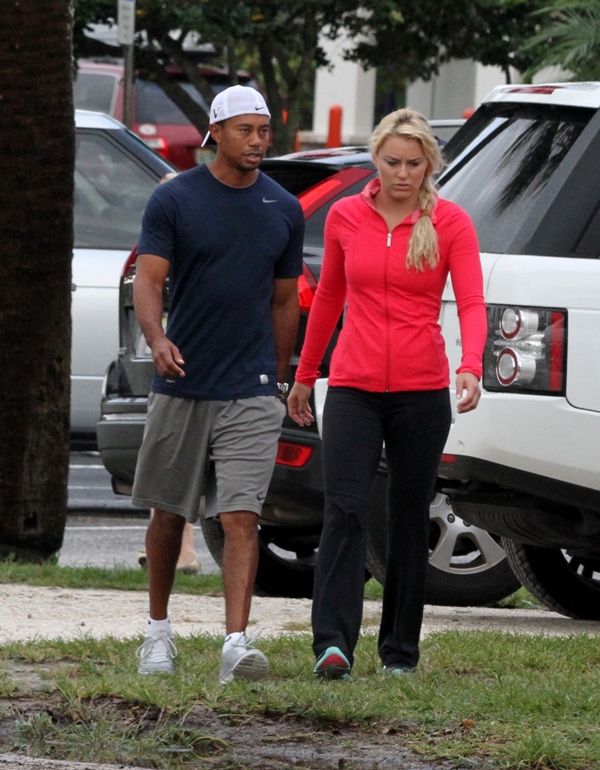 So here’s Tiger Woods with Lindsey Vonn who’s evidently taken well to his kids. Or vice versa. The two first confirmed their relationship by posting Sears portrait photos on Facebook a couple of months ago and then demanded to be left alone. Vonn proceeded to show up at all his tournaments drawing as much attention as possible. Sure. They say that Vonn’s profile, now that she’s Tiger’s bonafide, will help her with endorsements for Sochi 2014. Privacy indeed.
