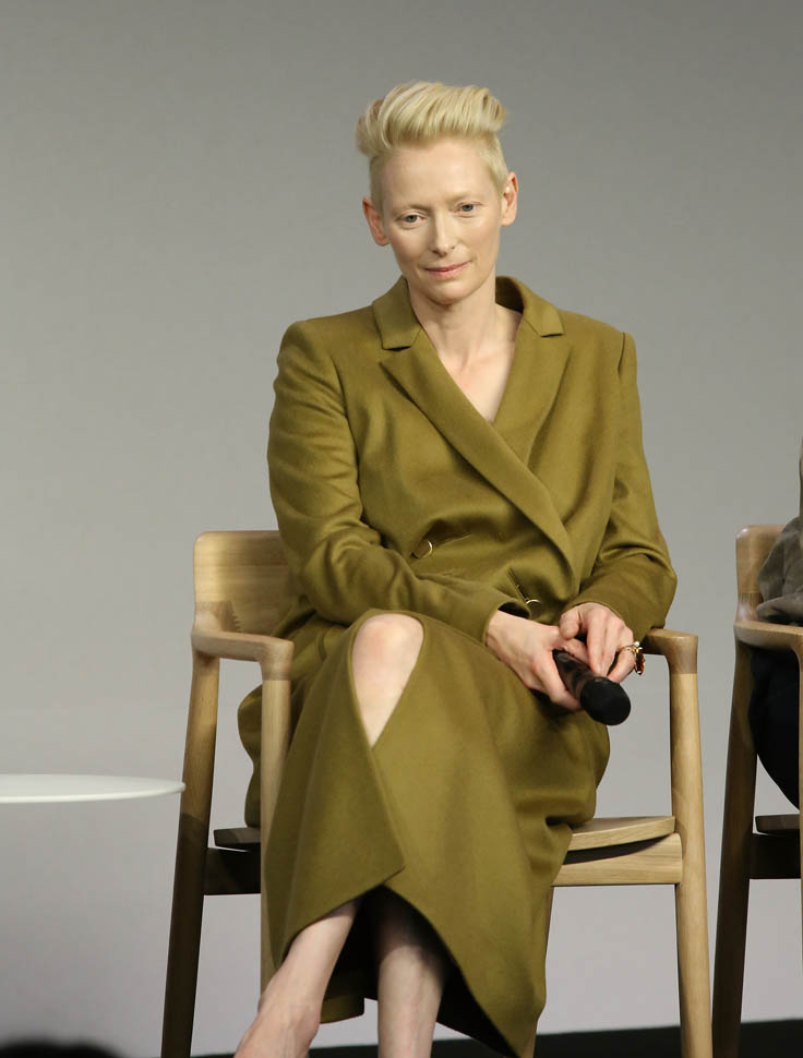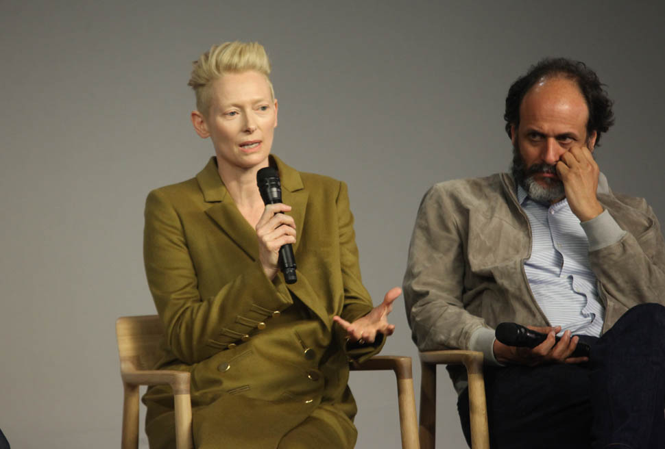 Attached - Tilda Swinton and Luca Guadagnino promoting A Bigger Splash at the Apple Store in NYC in April.