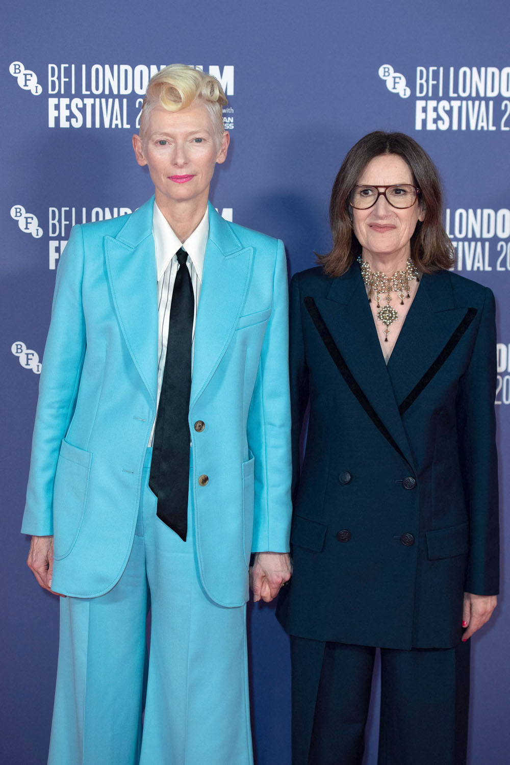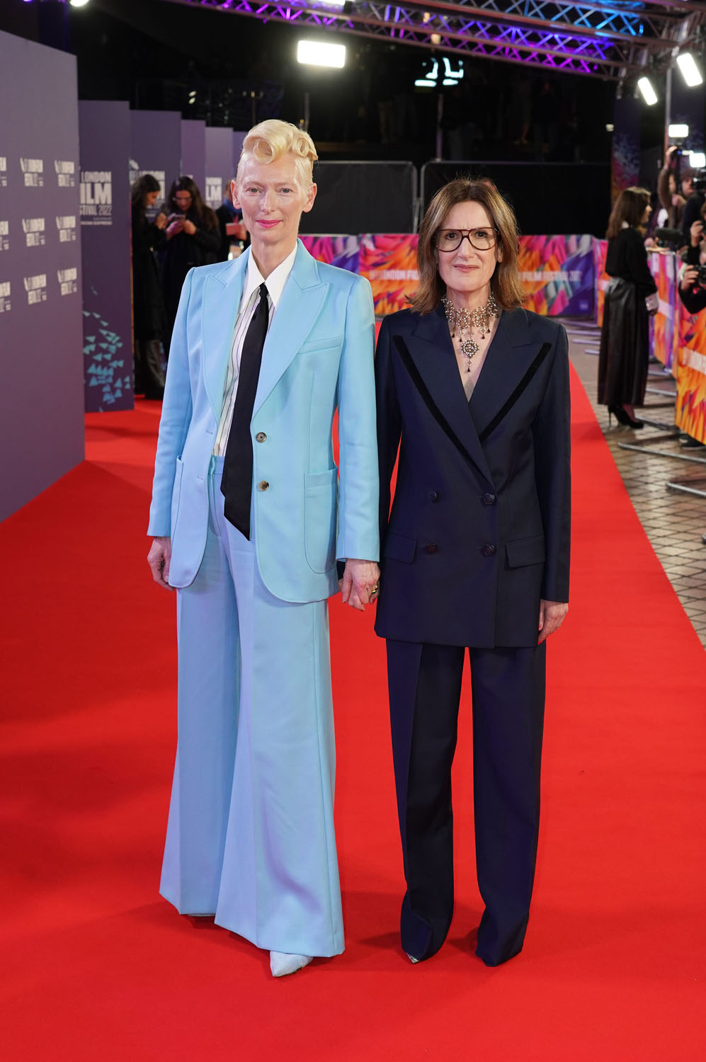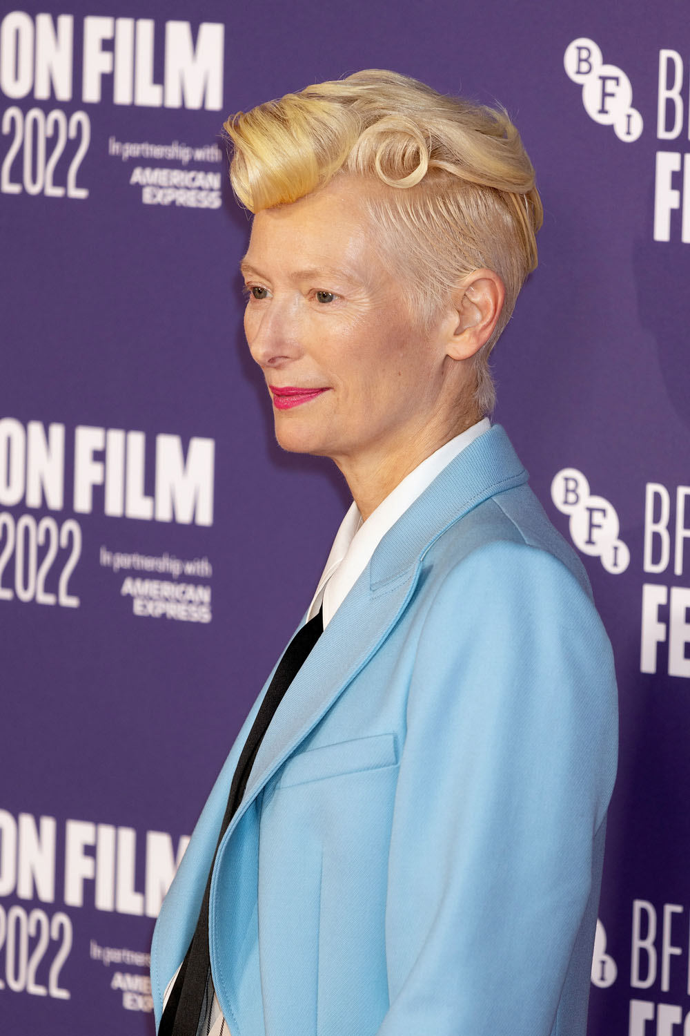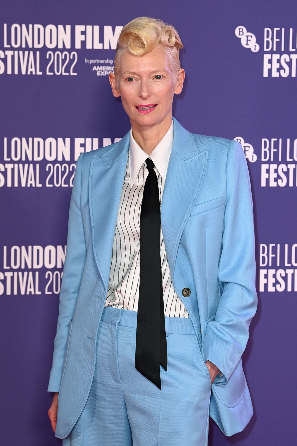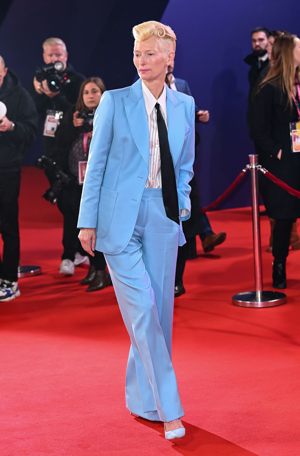 Last night, Tilda Swinton’s new film, The Eternal Daughter, premiered at the BFI London Film Festival. La Swinton showed up, doing her best David Bowie. If ever there is a biopic of Bowie, should anyone bother showing up besides Tilda Swinton? I think not. (There has already been an “unofficial” biopic, Stardust, starring Johnny Flynn, but that film did not have the Bowie estate’s support and was unable to use his music, which is two-thirds the point of a music biopic.) Look at her! She is channeling Bowie straight from 1987. I love everything about Swinton’s look, no notes.
