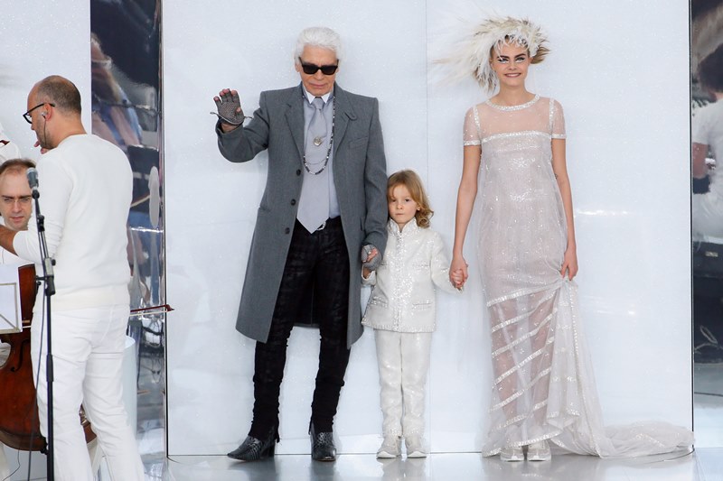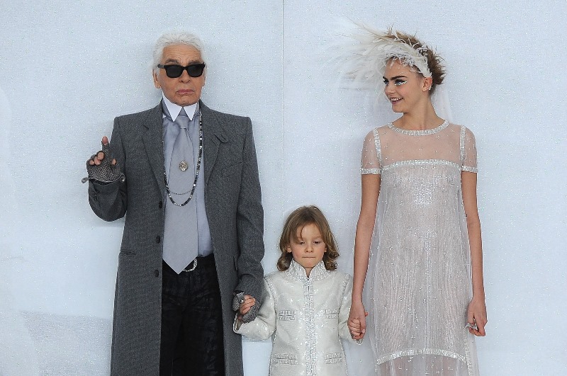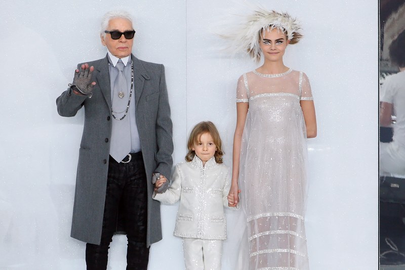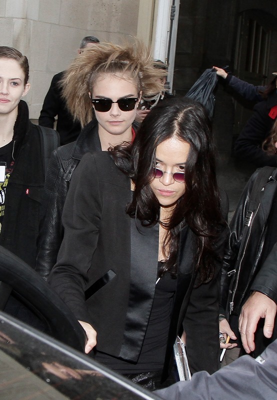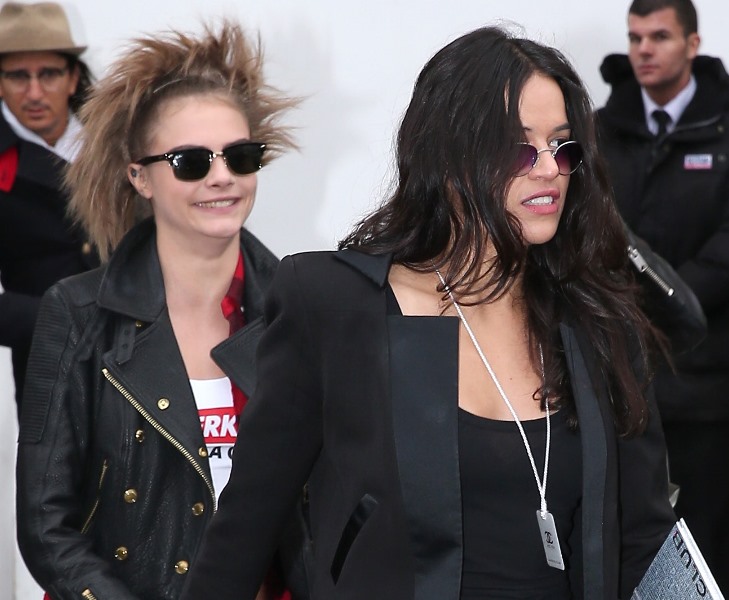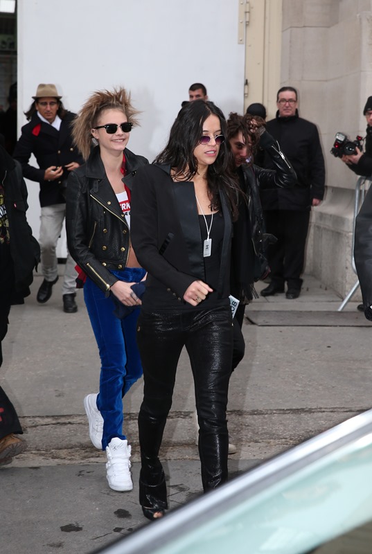 Also there… new best friends Cara Delevingne and Michelle Rodriguez who are now seemingly inseparable. Cara modelled in the show and had the honour of accompanying Karl onto the runway. So it’s an upgrade for both. Because, come on, the point of being a plus one is that you needed to be the plus one in the first place.