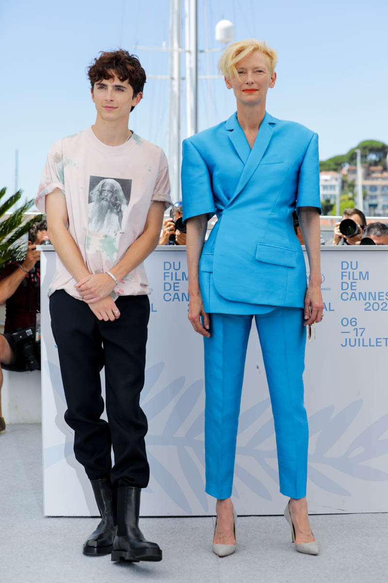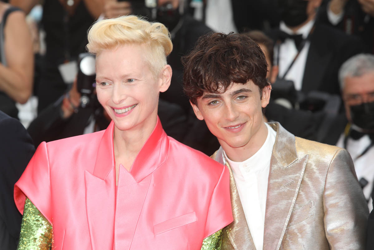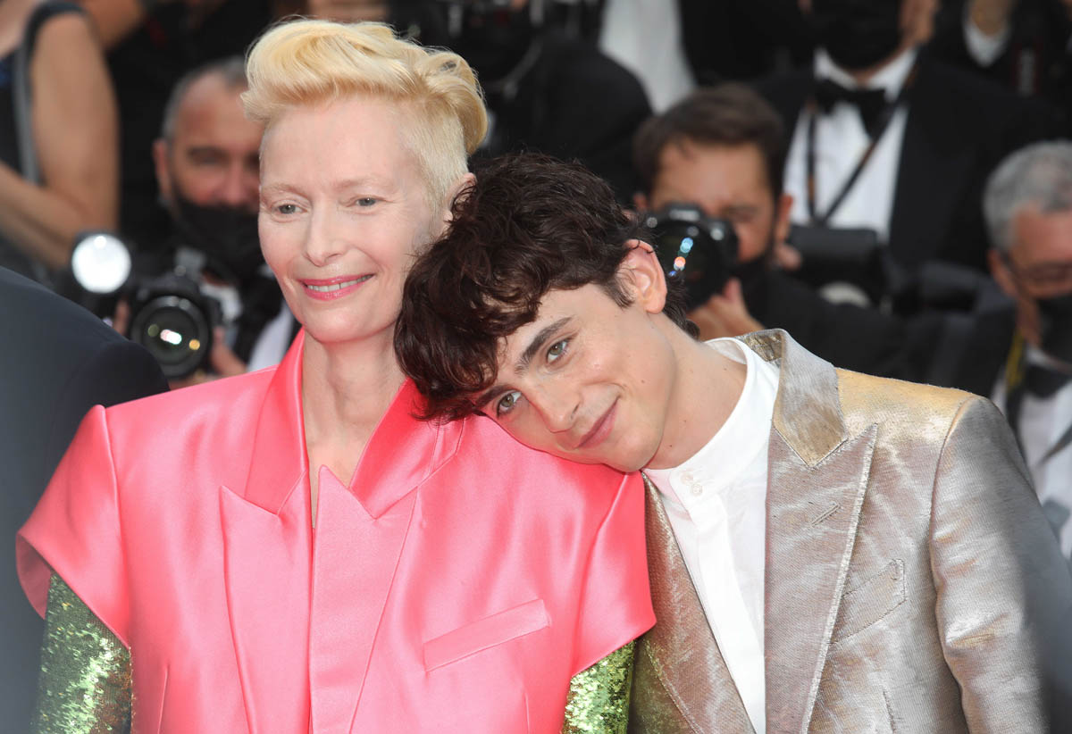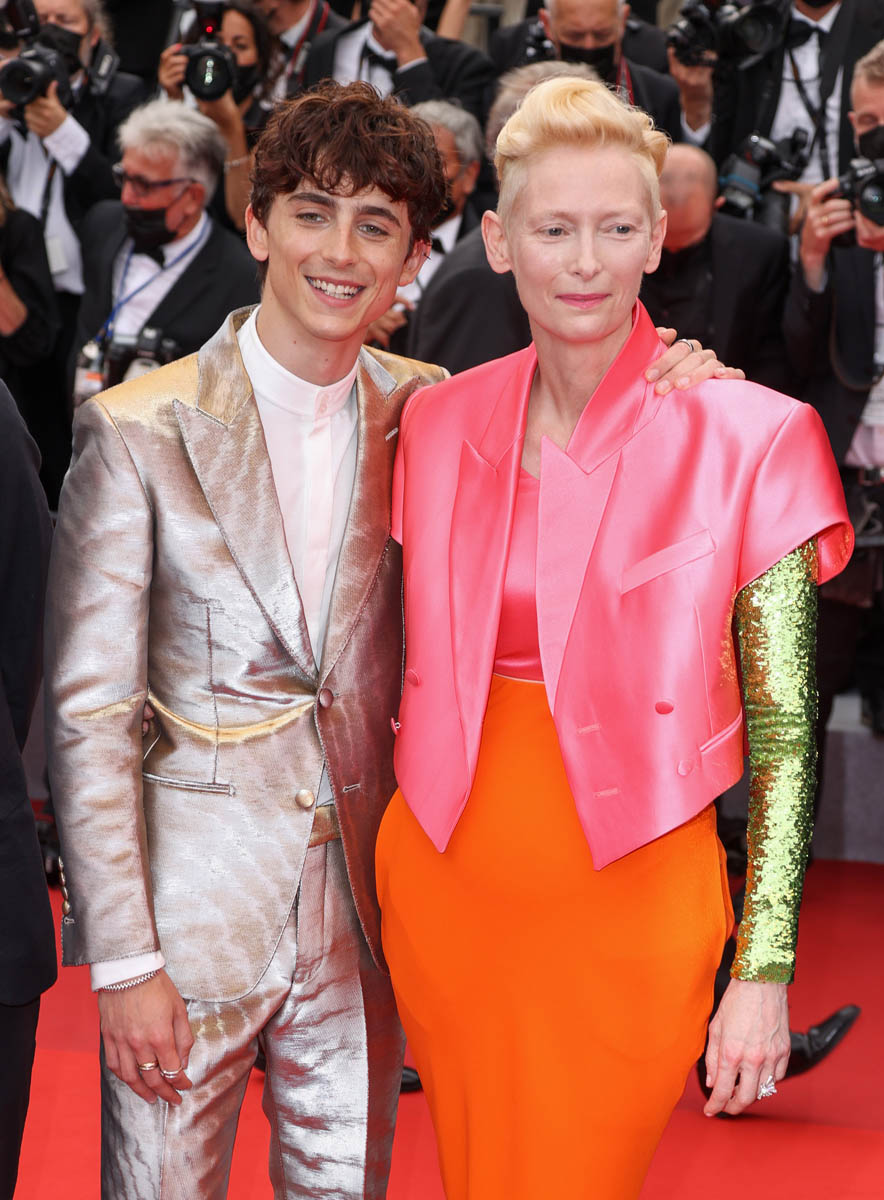 As we know, there’s an entire corner of the internet/Twitter dedicated to Timmy adoration. And another corner dedicated to Tilda adoration. And maybe a Venn corner dedicated to the combination of the two. And now here they are, Tilda and Timmy together, in Cannes with their matching metallic last night, like an otherworldly mother-son duo. They are clearly fond of each other: