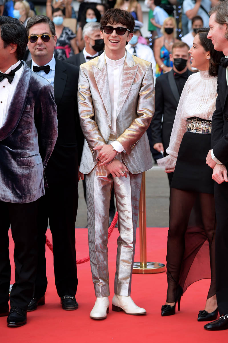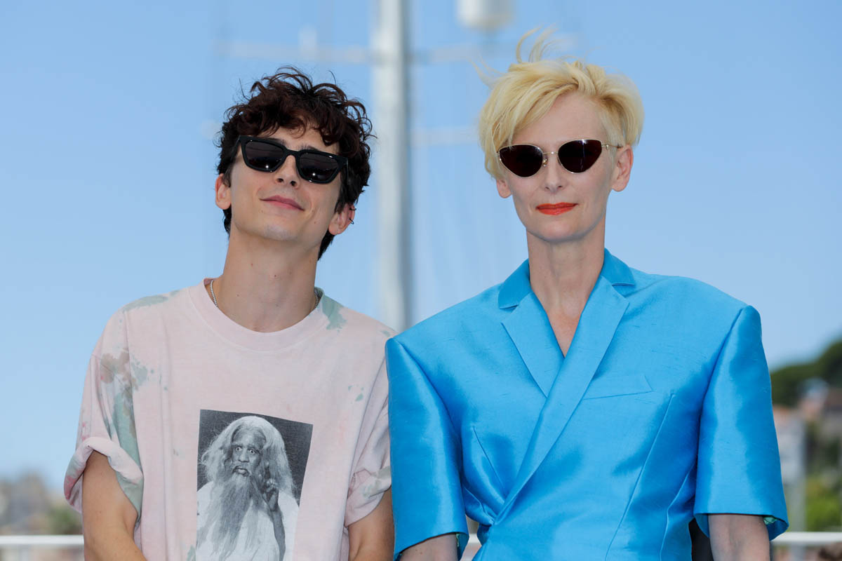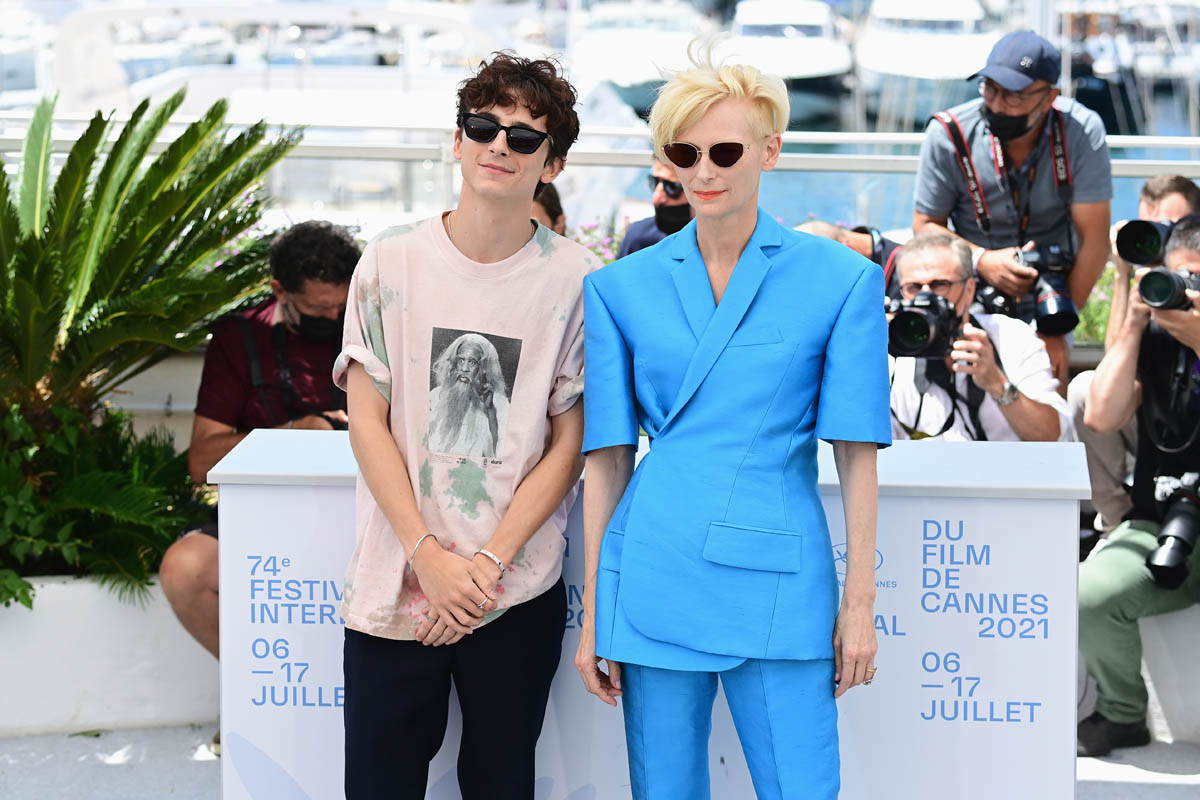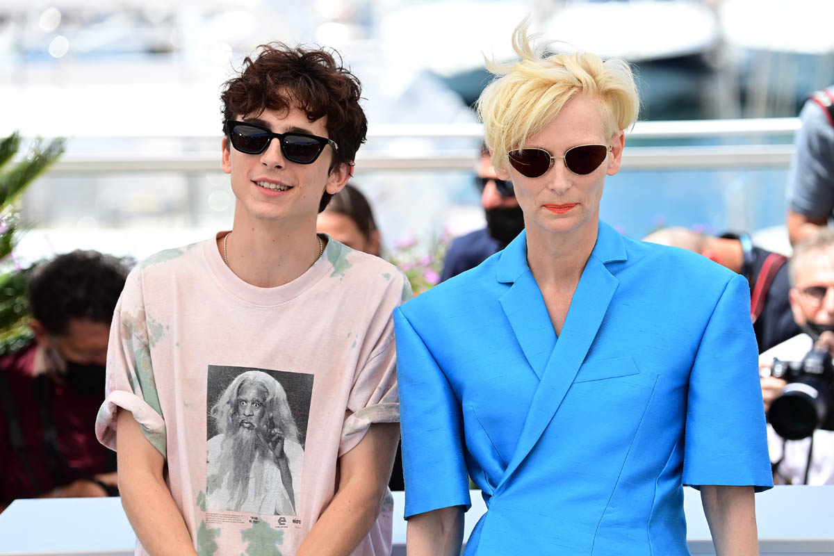 As we know, there’s an entire corner of the internet/Twitter dedicated to Timmy adoration. And another corner dedicated to Tilda adoration. And maybe a Venn corner dedicated to the combination of the two. And now here they are, Tilda and Timmy together, in Cannes with their matching metallic last night, like an otherworldly mother-son duo. They are clearly fond of each other: