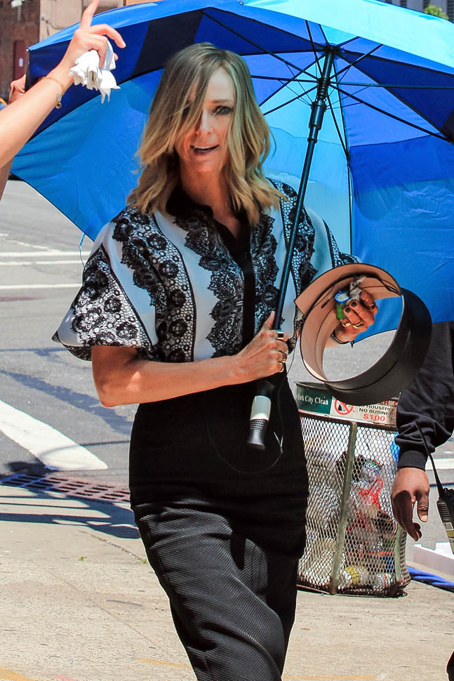 Tilda Swinton is shooting a film called Trainwreck in New York which is also how I would explain how her character’s been styled – a trainwreck. Tilda Swinton’s playing Jennifer Aniston. It’s hard to look at. I hate it. It’s making me grumpy. Toronto’s a muggy wet mess today. Our block smells like sweat and garbage. And this morning, my monthly cramps were so bad I almost had to pull over and curl into a ball until the Advil kicked in.