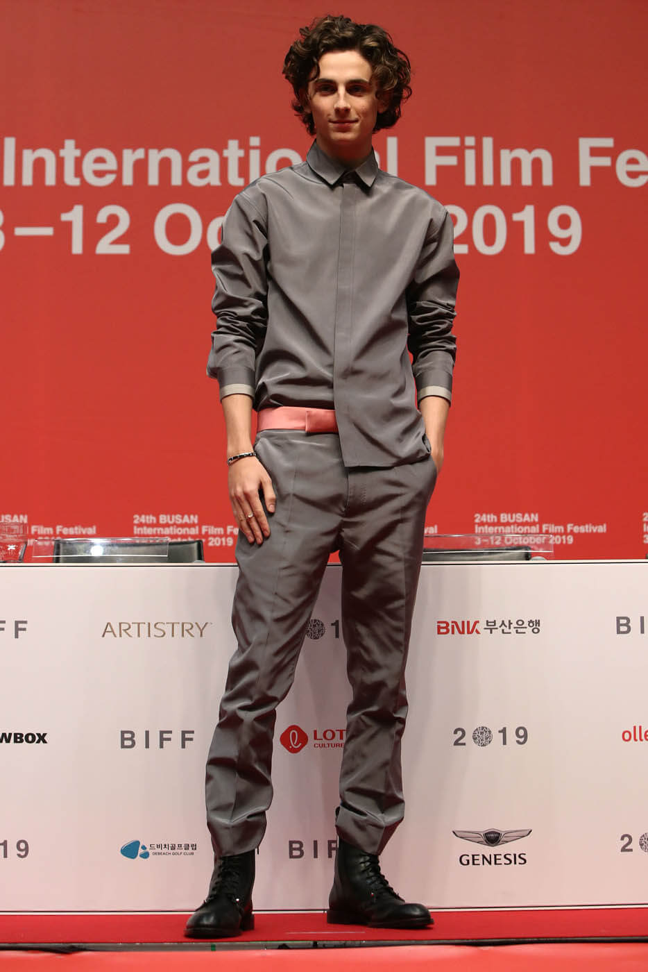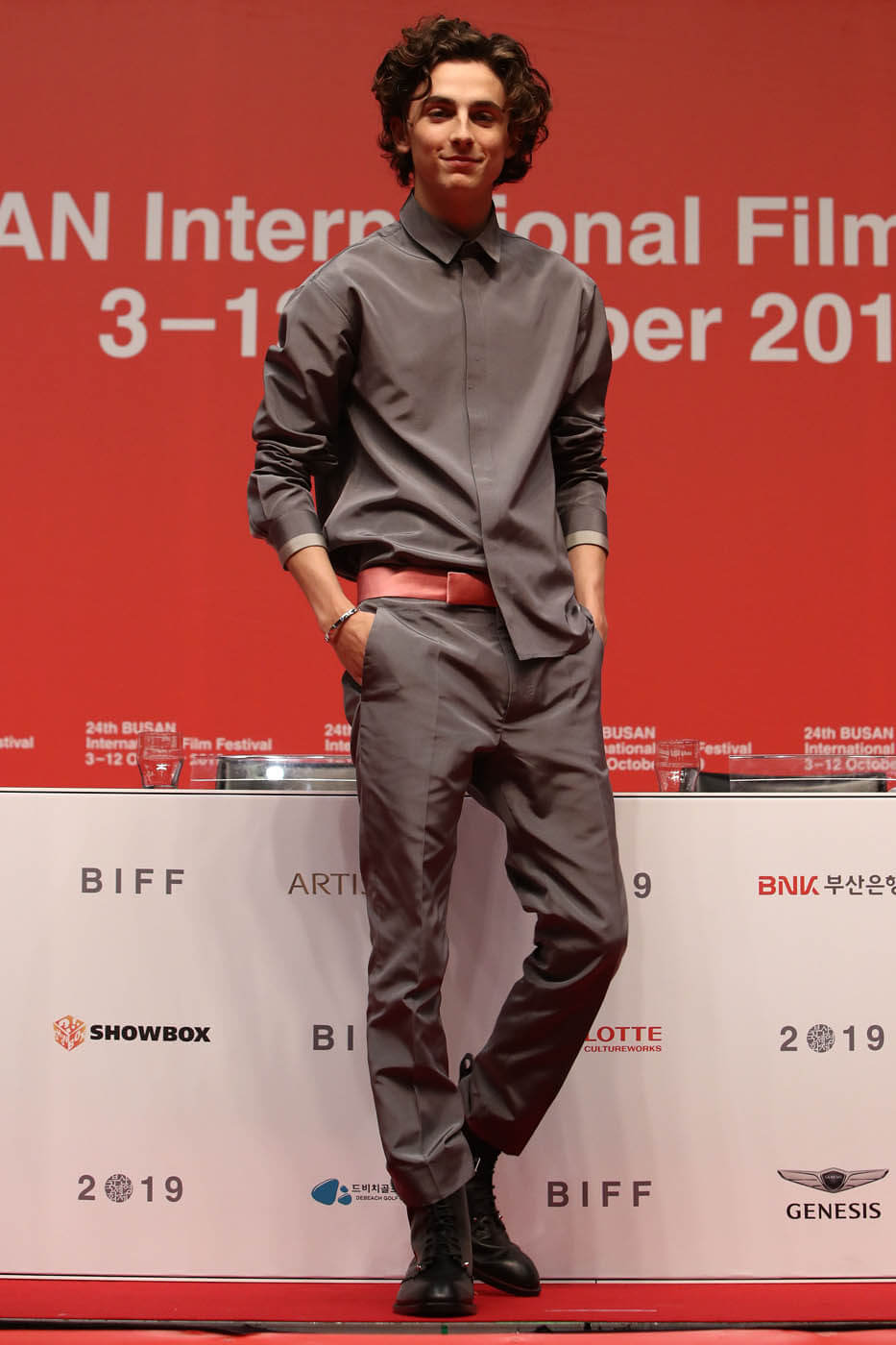 Timothee Chalamet continues to promote The King all over the world. And continues to drop fashion porn all over the world. There have been several great outfits this week, one after the other, all of them worn with his signature steeze = style with ease. That’s him, right? Nothing ever looks forced. And all of it is shareable. Meaning I would want to borrow from his closet. Let’s begin with this look in Busan a couple of days ago: