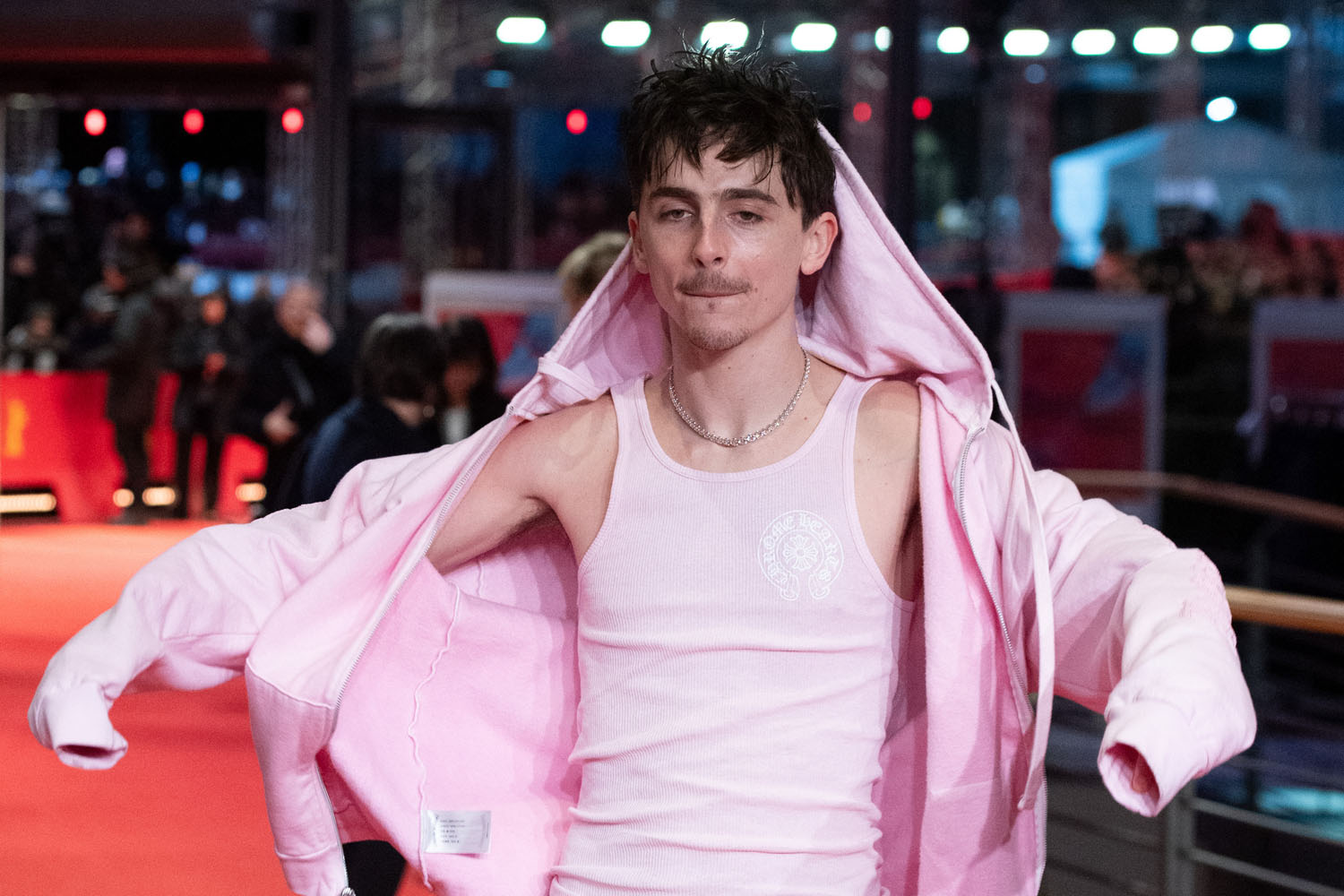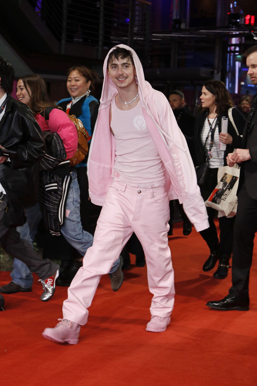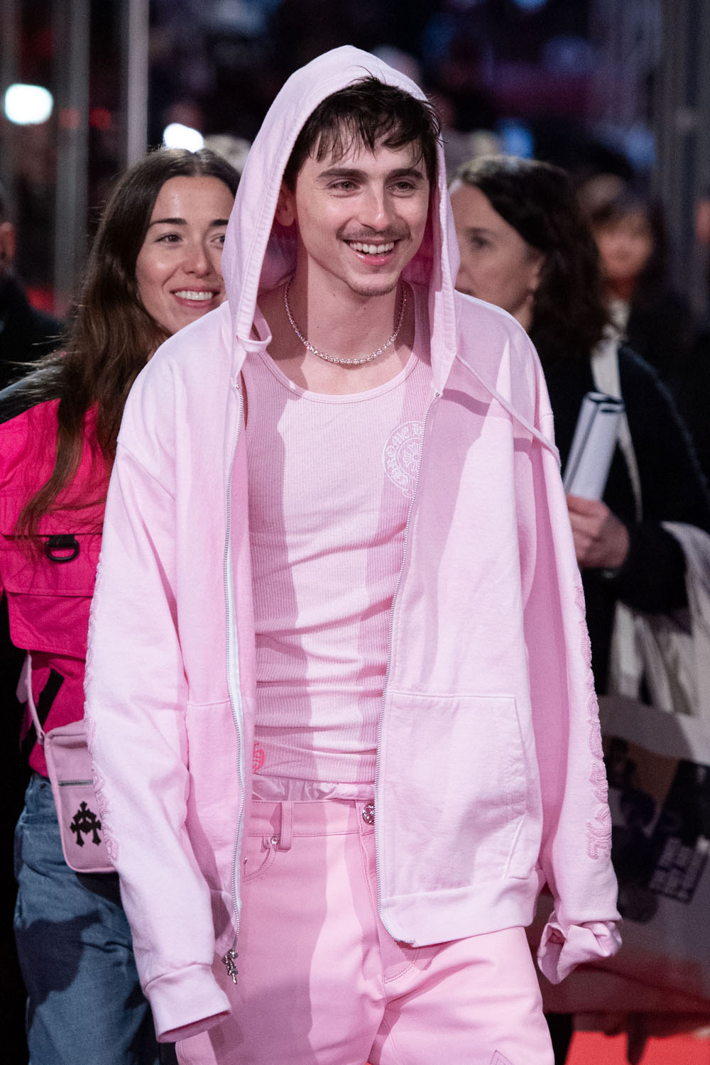 Back to Timmy on 60 Minutes - no major revelations here but they make a point of repeating things we’ve heard before: how he prepared for five years to play Bob Dylan in A Complete Unknown; that he did his own singing in the film; that he grew up in New York, taking Anderson Cooper to his old building and sharing videos from his teen years on stage in high school, all standard 60 Minutes stuff…but Timmy style, in that he’s definitely not pandering to the olds with his clothing. Which I’ve been mentioning a lot because I’ve quite enjoyed this fashion phase. Like, he showed up to the Berlin Film Festival in a pink tank and jeans and later put a matching hoodie on.