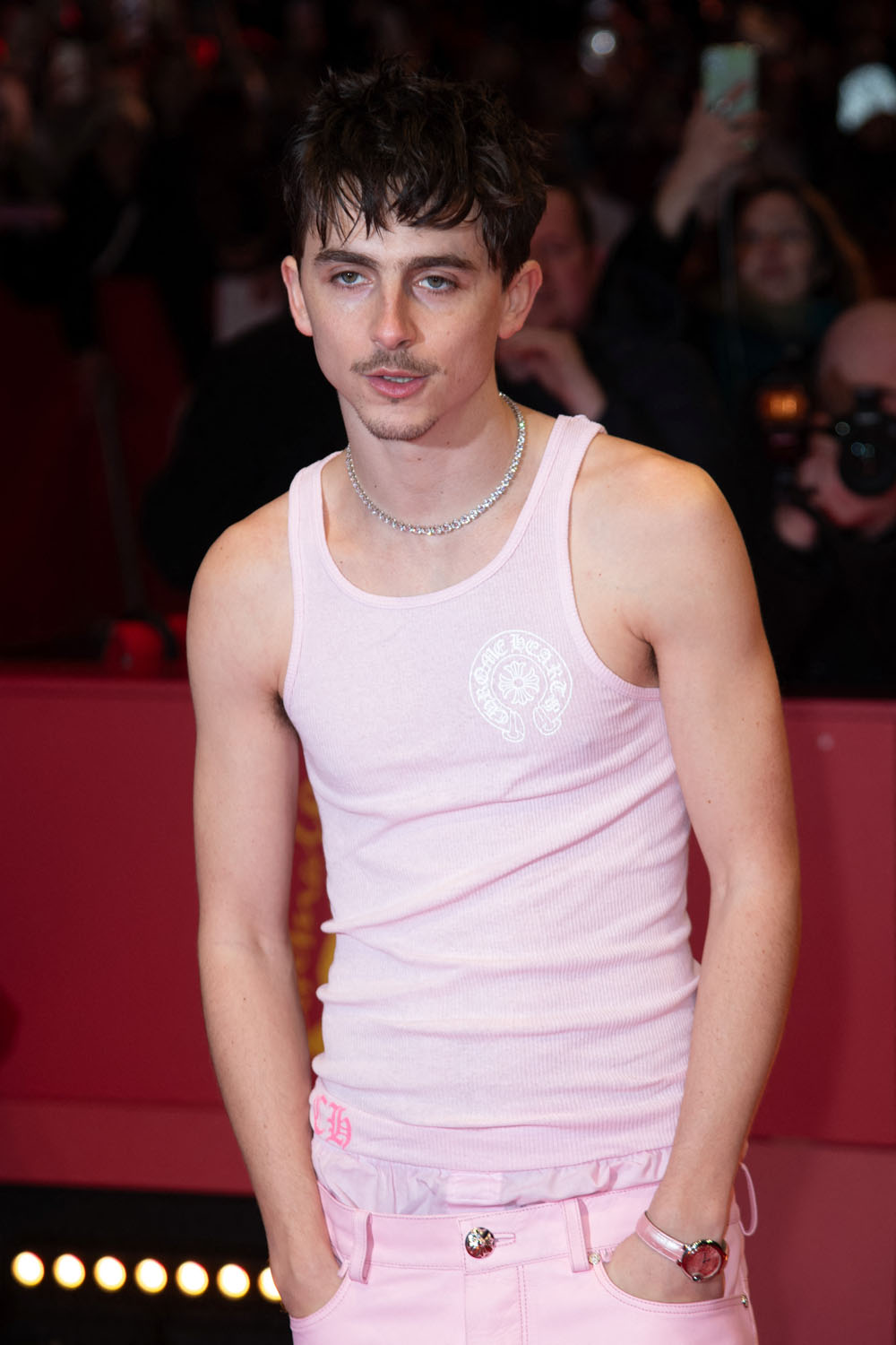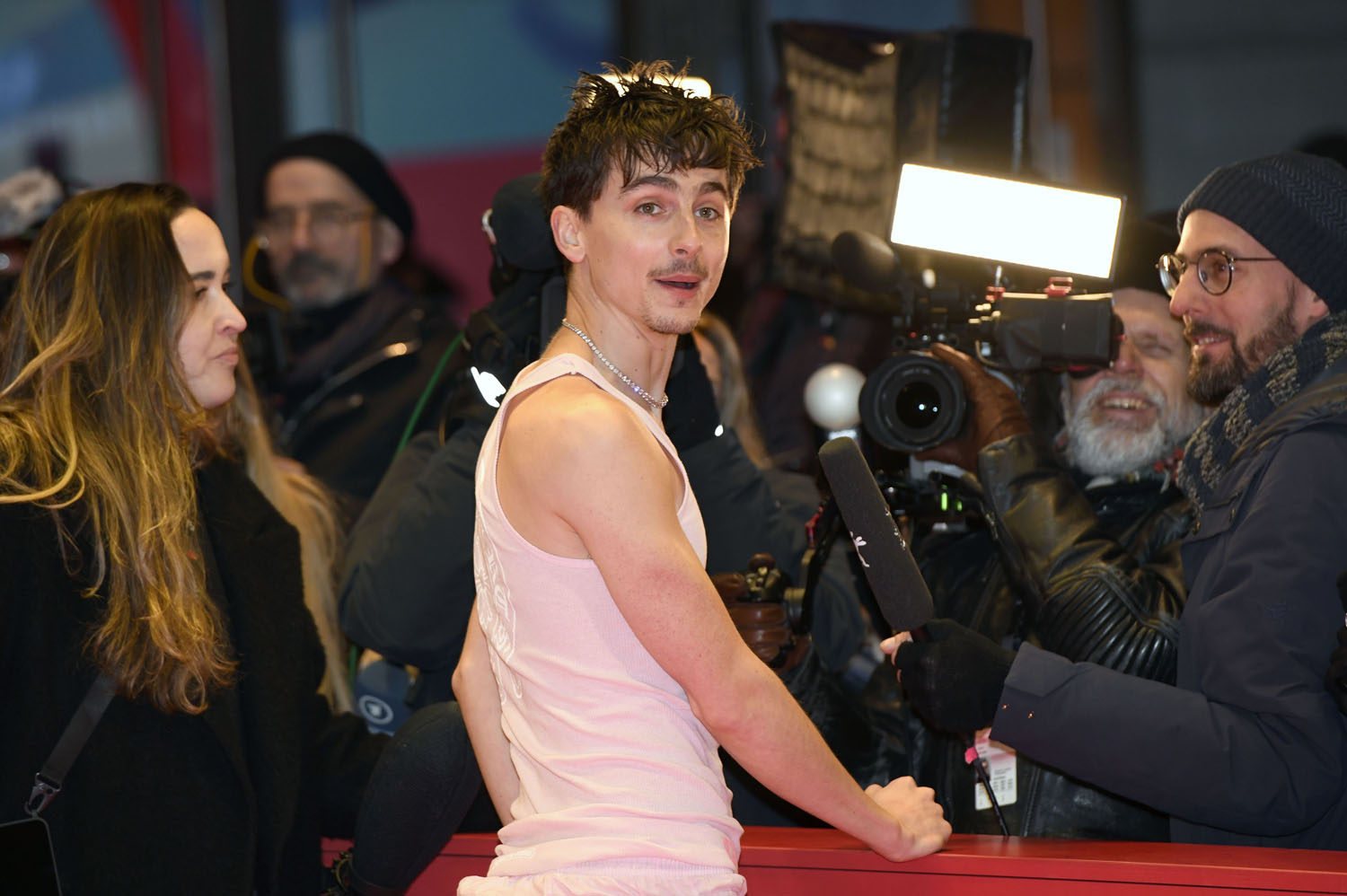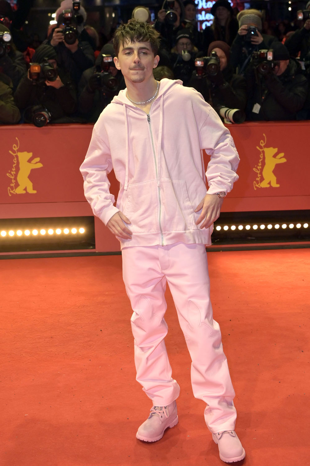 Back to Timmy on 60 Minutes - no major revelations here but they make a point of repeating things we’ve heard before: how he prepared for five years to play Bob Dylan in A Complete Unknown; that he did his own singing in the film; that he grew up in New York, taking Anderson Cooper to his old building and sharing videos from his teen years on stage in high school, all standard 60 Minutes stuff…but Timmy style, in that he’s definitely not pandering to the olds with his clothing. Which I’ve been mentioning a lot because I’ve quite enjoyed this fashion phase. Like, he showed up to the Berlin Film Festival in a pink tank and jeans and later put a matching hoodie on.