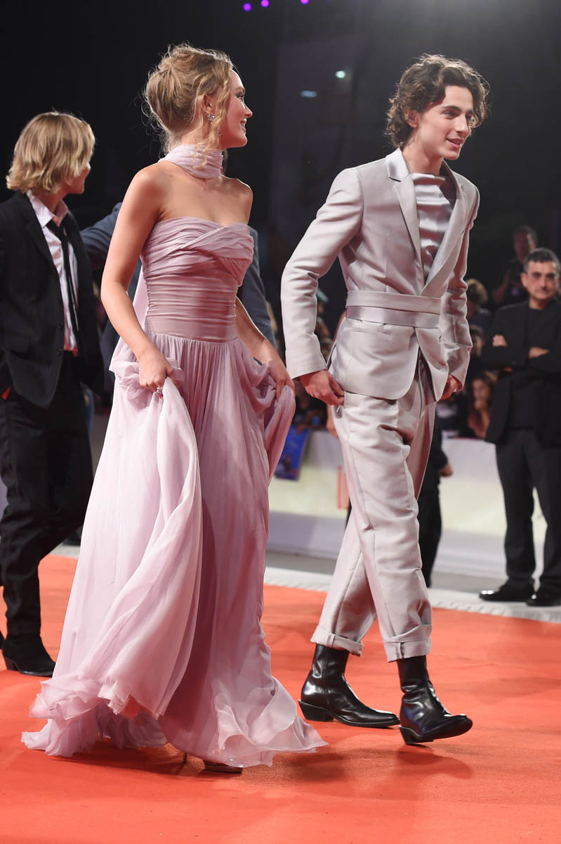 Netflix’s The King premiered in Venice this week. The reviews have been hilarious and, apparently, Robert Pattinson’s performance is hilarious. Some people are super into Timothee Chalamet as King Henry “Hal”. Some think it’s overwrought. All of them think Robert Pattinson is a scream as the Dauphin. In other words, I can’t wait to see it, and we’ll get into that closer to the release date so for now can we just talk about… Timmy and Lily-Rose Depp?