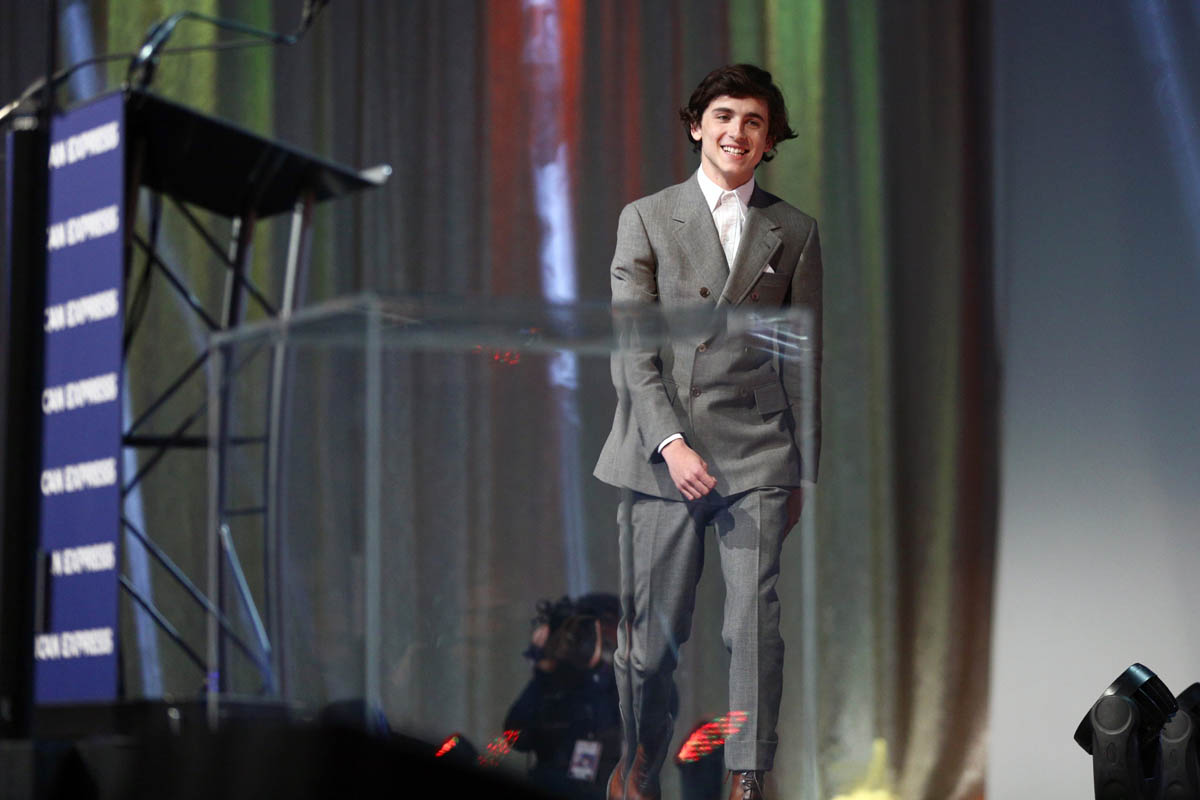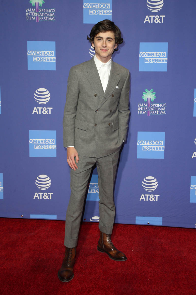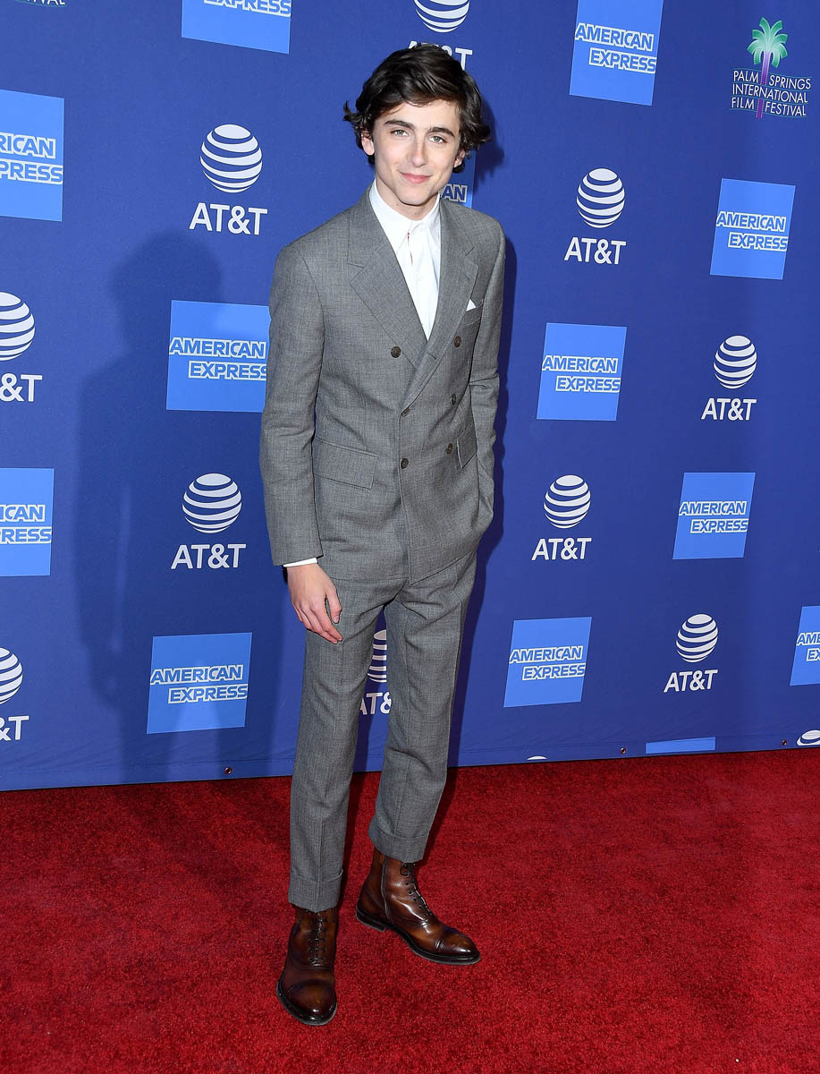 The 2017/2018 award season, for Timmy, was a victory lap in and of itself. He was just happy to be there. He was the youngest Best Actor nominee in a long, long time. No one was expecting him to win. This time, his chances are better. He’s been submitted in the Supporting Actor category and most consider him a lock for a nomination, up against Mahershala Ali, Richard E Grant, Sam Elliott, and Adam Driver, with Michael B Jordan mayyyyybe in there as a longshot. Timmy isn’t the frontrunner, and this category often rewards veterans in the business, like Richard E Grant and Sam Elliott, but I don’t think we should count him out quite yet. Not when someone like Laura Dern is up there, in front of the Palm Springs audience (remember, a lot of Academy members live in Palm Springs and show up to this gala) giving him her endorsement. Laura’s an active member of the Academy of Motion Picture Arts and Sciences. She had a shot of being Academy President, but ended up taking herself out the race for scheduling conflicts because, as we’ve seen, her career has never been hotter. The point is that Timmy has some powerful people campaigning on his behalf too. And he really is that well-liked, both outside of the industry and especially within it. Also, he just showed us what an acceptance speech from him at the Oscars might look like. It’s pretty good.