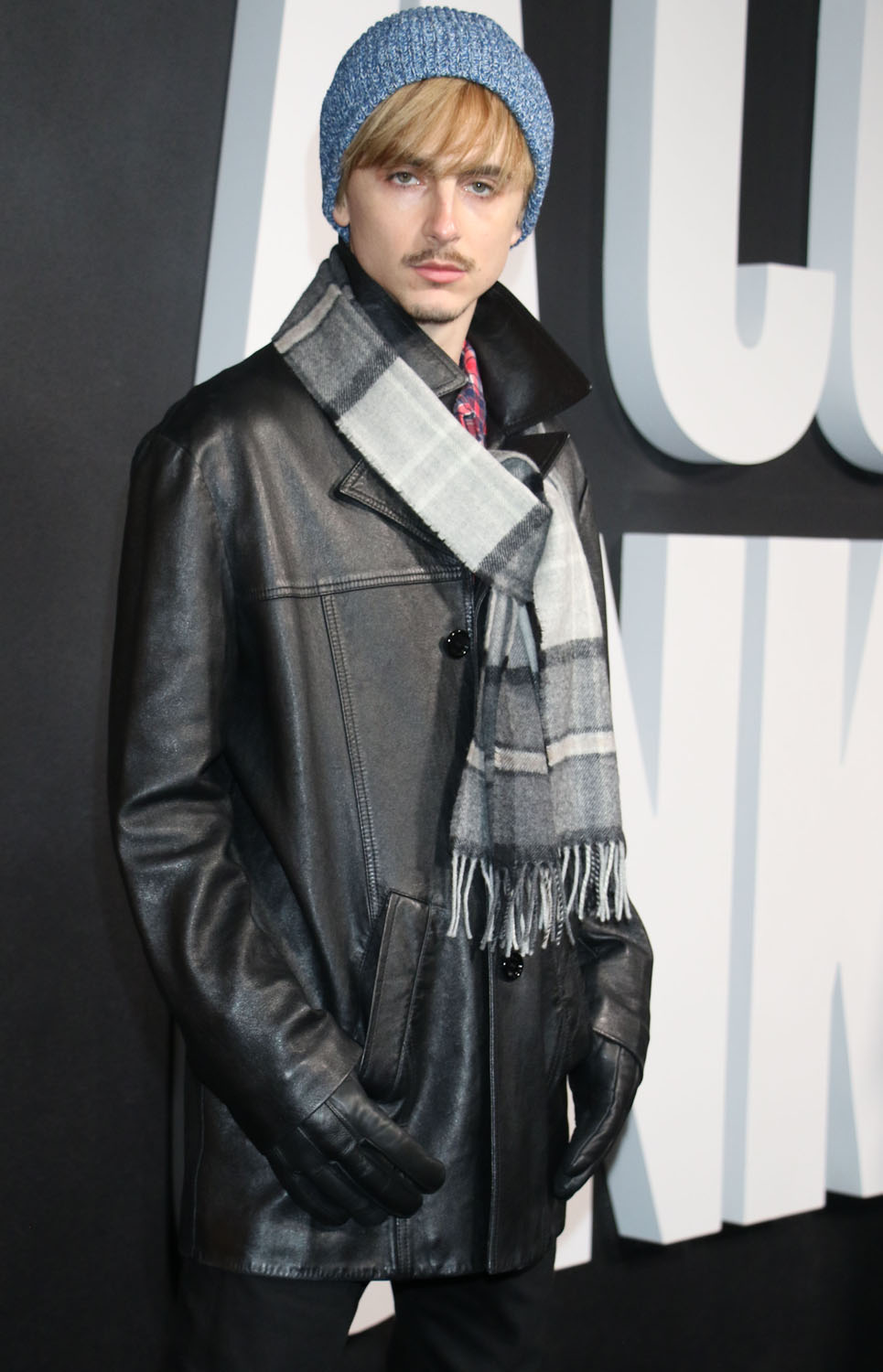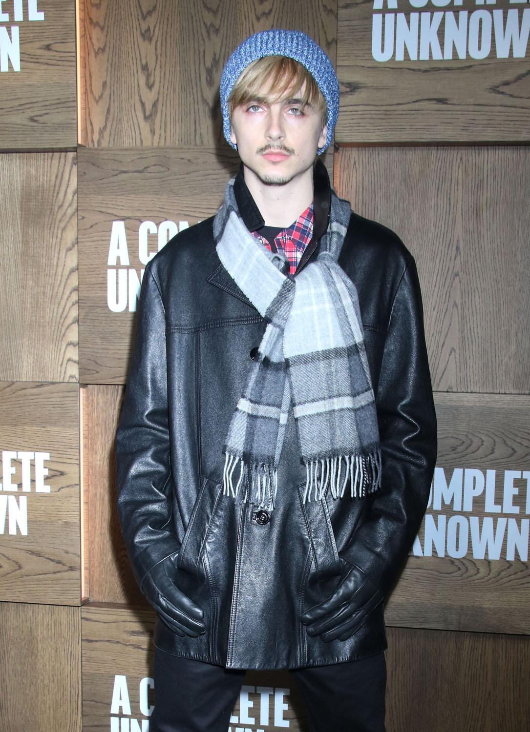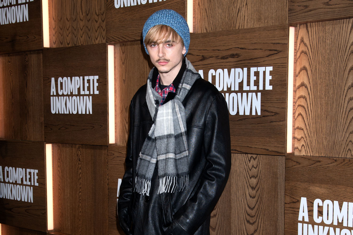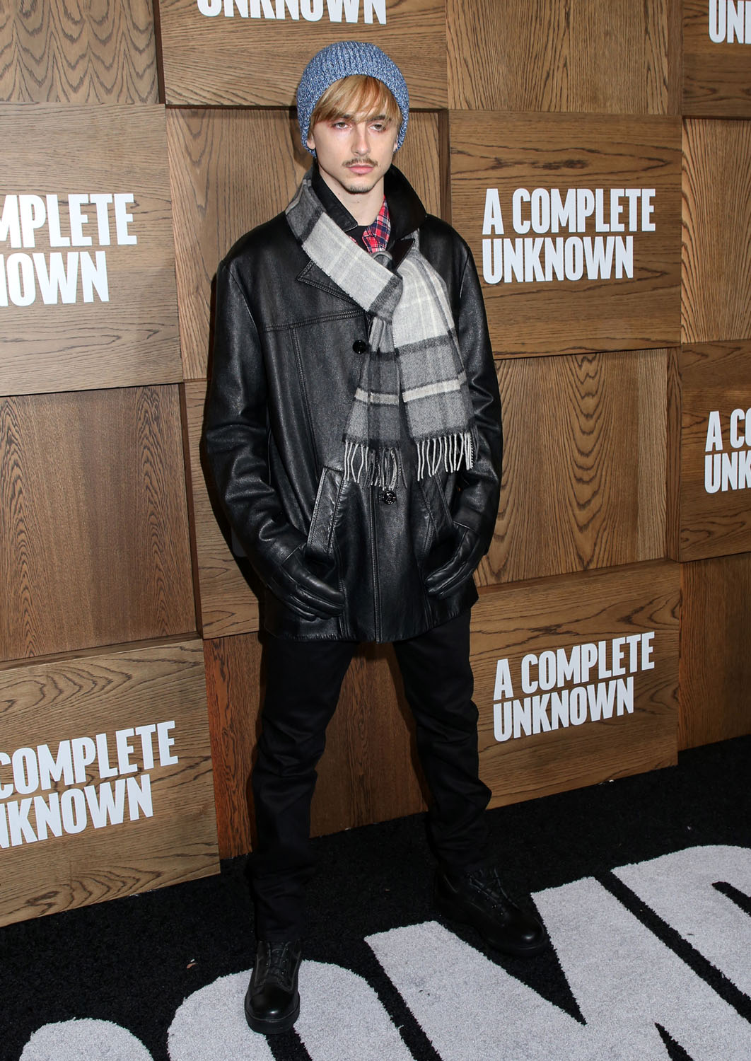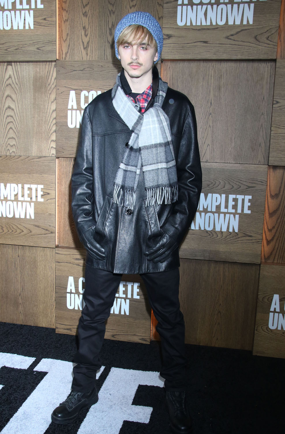 And now this, on Friday night, at the NYC premiere of the film, in which he plays Bob Dylan, turning the red carpet in December into Halloween, and actually recreating a look of Bob’s from 2013 at Sundance. Flip through the carousel.