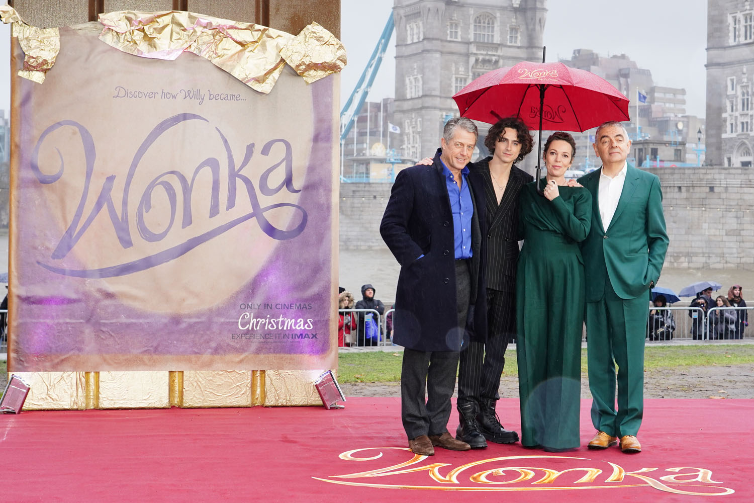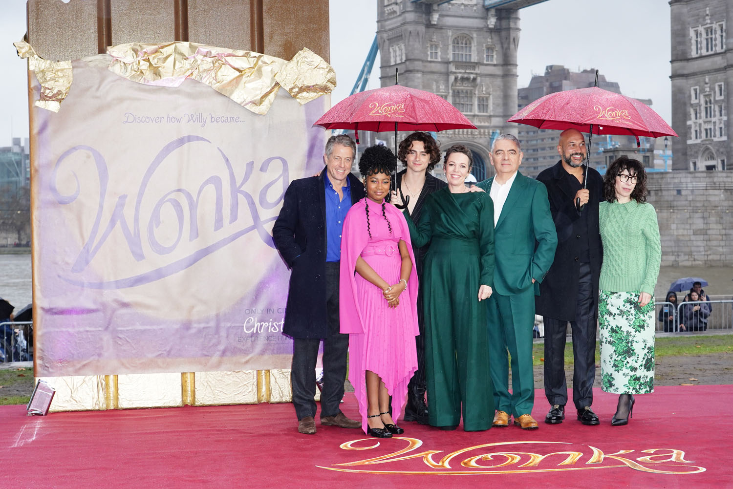 With the exception of Timmy and his co-stars Olivia Colman, in dark green, and Calah Lane, in hot pink, everyone else looks like they just stepped off the tube and onto the red carpet. Hugh Grant, Matt Lucas, Keegan-Michael Key, and Sally Hawkins look like they’re wearing clothes right out of their closets, which is fine, but again, I get the feeling the real effort was saved for the premiere. Meanwhile, Rowan Atkinson and director Paul King made some effort with casual suits. After the casualness of this photocall, though, I am expecting some real effort at the premiere. If we must have Wonka, we can at least have some good fashion with it, as a treat.