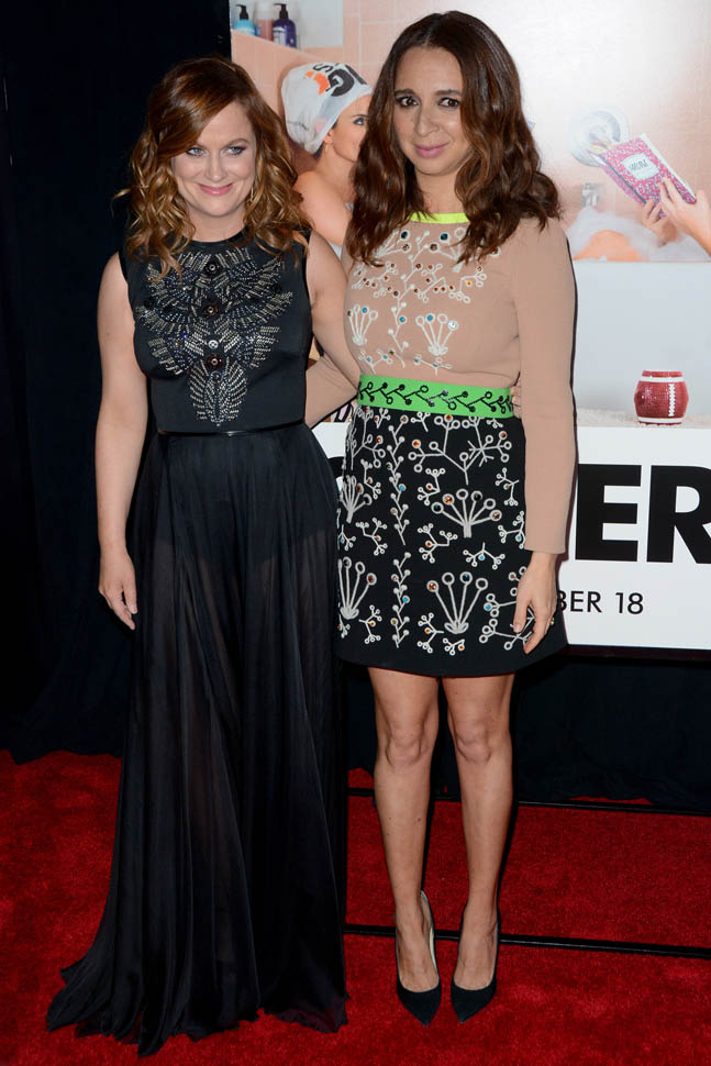 I’m actually a fan of Tina & Amy’s first movie together, Baby Mama, so I’m looking forward to Sisters, even though the trailers have been kind of lame. But they’ve been on point with their other marketing, including spoofing the New New Star Wars “everything has changed, nothing has changed” video. What’s not on point are their fashion choices at the premiere. I love Maya Rudolph’s dress, but I hate sheer skirts on ANYONE, sorry Amy, and Tina Fey is completely the wrong type for faux dominatrix couture. And no it’s not age or anything like that, it’s that she literally does not have the edge required to pull off that dress. It’s going to get swallowed at the box office, but I hope Sisters is at least actually funny, like these dresses.