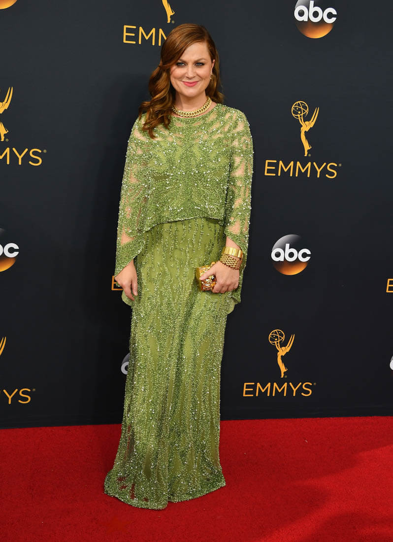 Tina’s green gown, with the matching earrings, is probably, for most, the standout. And it is indeed one of her best award show dresses of all time. She looks glorious. I prefer Amy’s olive green though. It looks lovely against her red hair. And the silhouette, all caped and dramatic, is much more original, much less obvious “I’m going to an award show” than the cut of Tina’s.