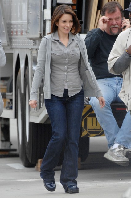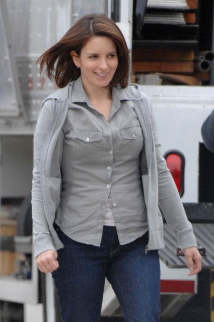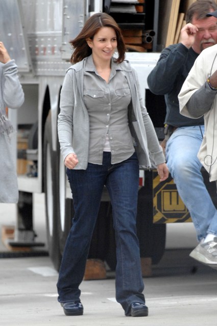 Every girl’s best friend Tina Fey in LA today on the set of her new move Date Night. As previously reported, Date Night stars Tina with Steve Carell and Leighton Meester and Mark Wahlberg and James Franco about a couple trying to enjoy a night on the town when it all goes to sh-ts, Can’t wait.
