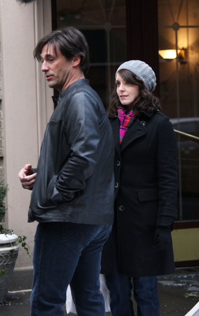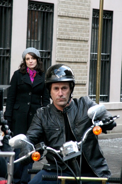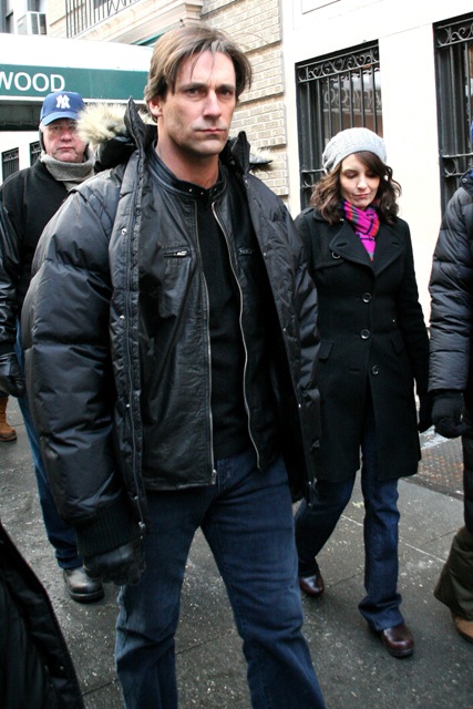This is Tina in New York today shooting a new episode of 30 Rock with the show’s latest guest star, the hotness known as Jon Hamm. Liz Lemon finally finds a man and it’s Jon Hamm? He’s on for several episodes but not tonight. Tonight it’s still Salma Hayek.