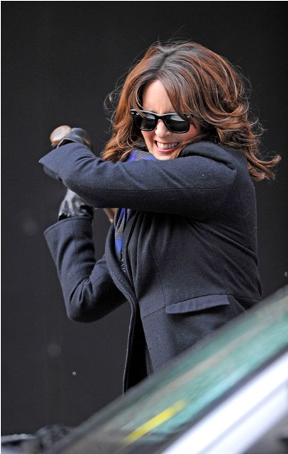 Tina Fey arrived at Letterman studios in New York to tape an appearance this afternoon presumably to promote the return of 30 Rock next Thursday. As you know, the season is starting late because Tina had a baby in August, her second daughter Penelope.