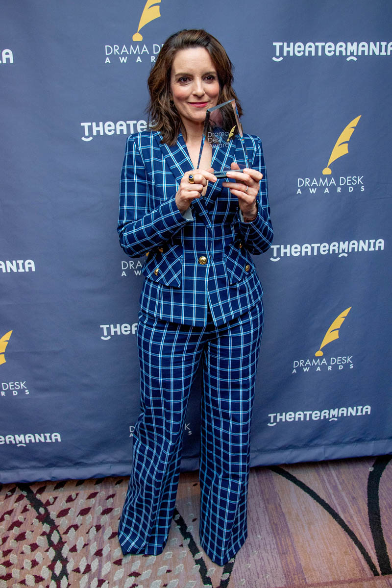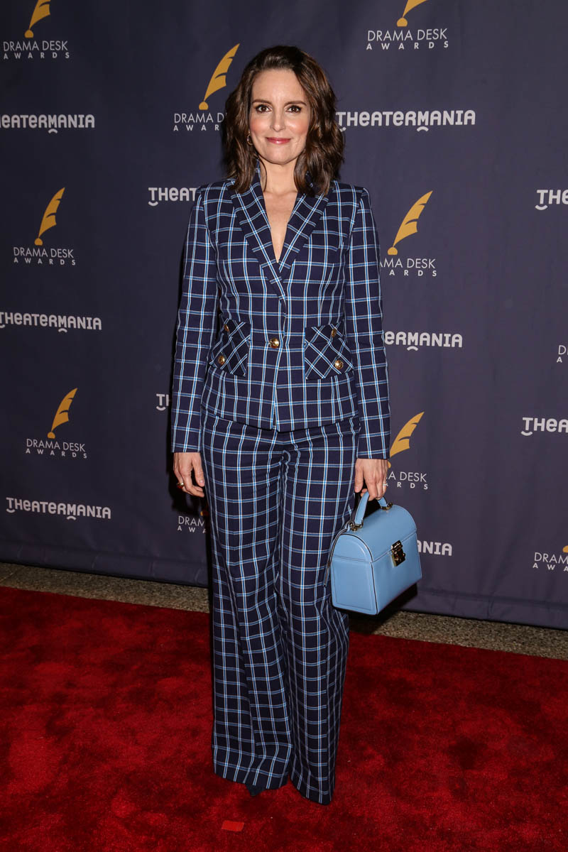 Check her out in this amazing blue plaid suit. The fit is flawless. The pattern looks great on her. She’s wearing the sh-t out of it. And I’m not sure it’s something we would have expected her to show up in. At least I wouldn’t have made the call if I was on the carpet last night that Tina would show up in a bold plaid suit, head to toe. Again, not complaining. In fact, the opposite of complaining. I looked at these photos and got really excited.
