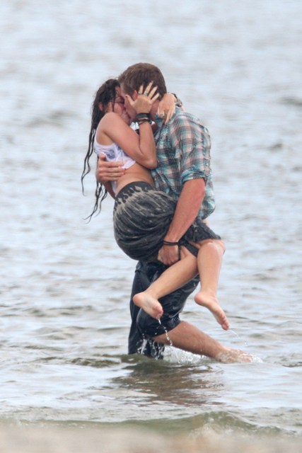 What would you call getting wet, and making out with a boy, on the beach, and inviting the paps? With the approval of mom?