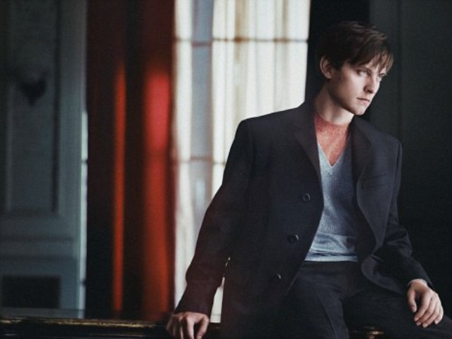 Tobey Maguire is Prada’s new face. Here are two images from his ad campaign. The shot where he’s leaning against a table, looking away, in a grey jumper over an orange one? Please. I’m all over it.