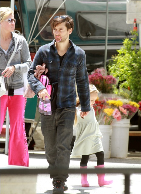 As for Tobey – happily married for a few years now, as you know, to Jennifer Meyer, a jewellery designer and also daughter of Ron Meyer, head of Universal Studios who also founded CAA – he’s been working on the film adaptation of Life of Pi (a book I’ve repeatedly said I hate, and I know I’m the only one) and is also supposed to play Nick Carraway with his bff Leo DiCaprio in The Great Gatsby.