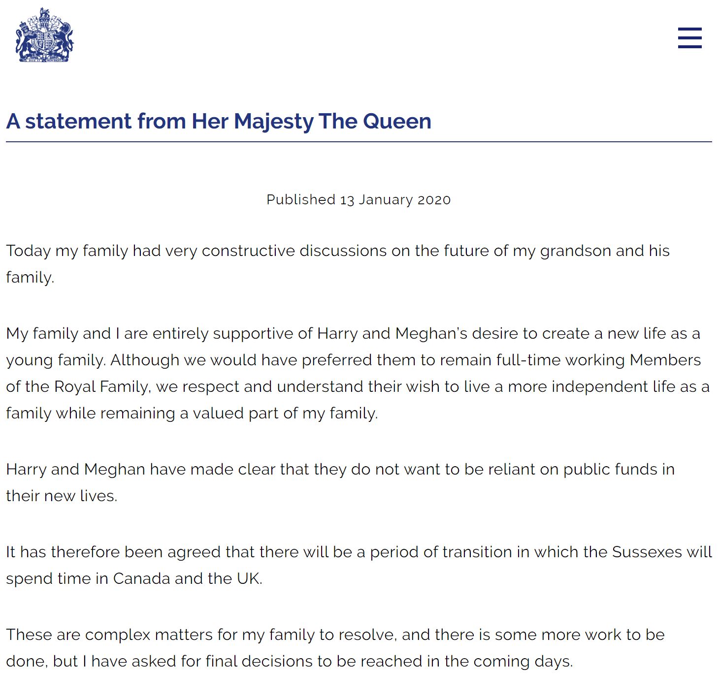 As for the content of the Queen’s statement, it’s informal in tone in how often she refers to “my family” and also… the fact that she’s talking about money, which is usually beneath her. Upstairs people never want to talk about money – it’s considered inelegant; but also, you never want the downstairs people to think too hard about how much of it they don’t have. Here we have the Queen, though, sending out a message to the public including details about “public funds” and how Harry and Meghan essentially want to earn their own way.