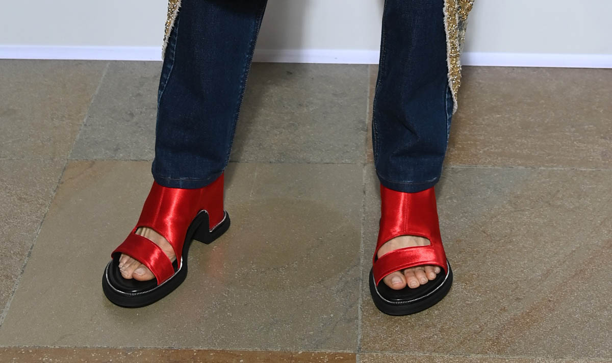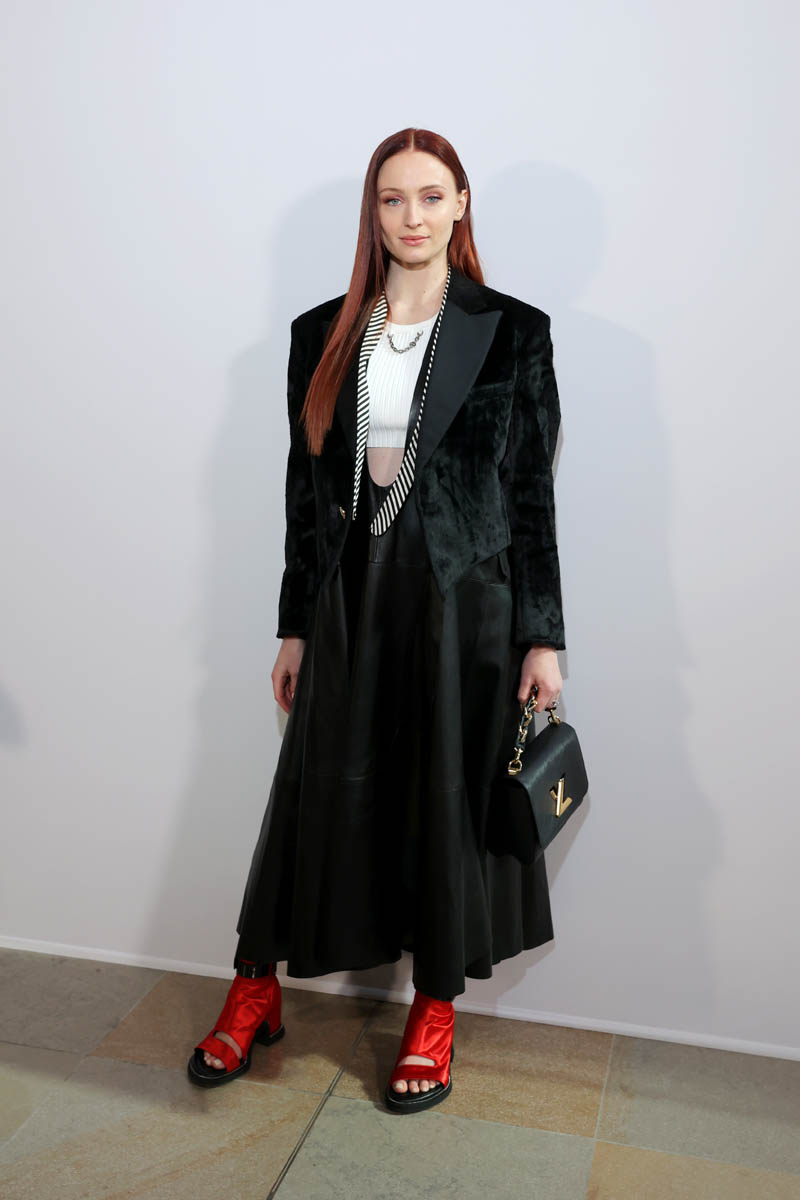 Sophie Turner, also a redhead and also an LV ambassador, was there too wearing the red version of the sandal-booties we first saw on Jung Ho-yeon back in November at the CFDAs.