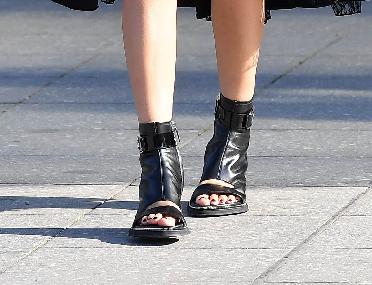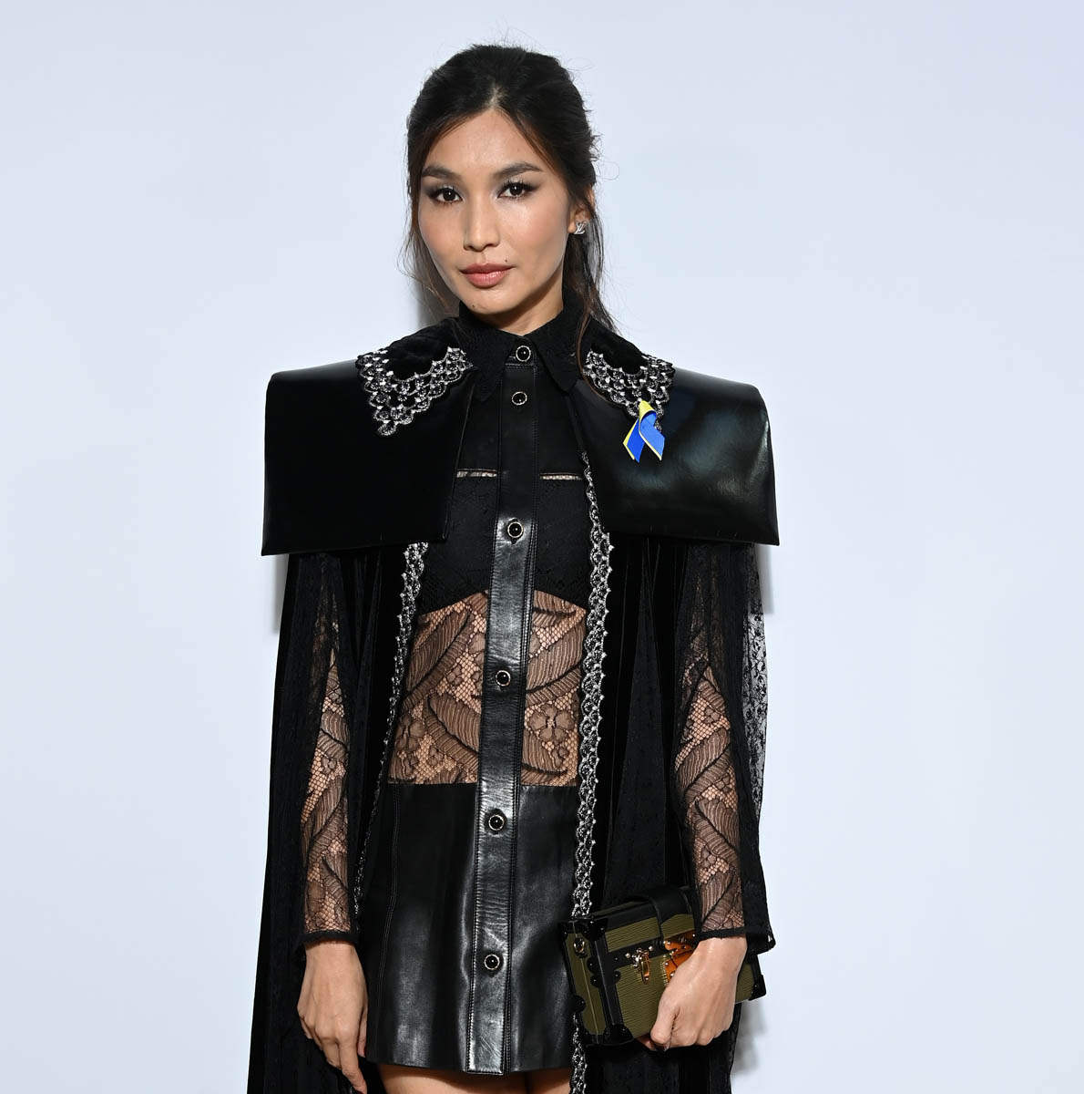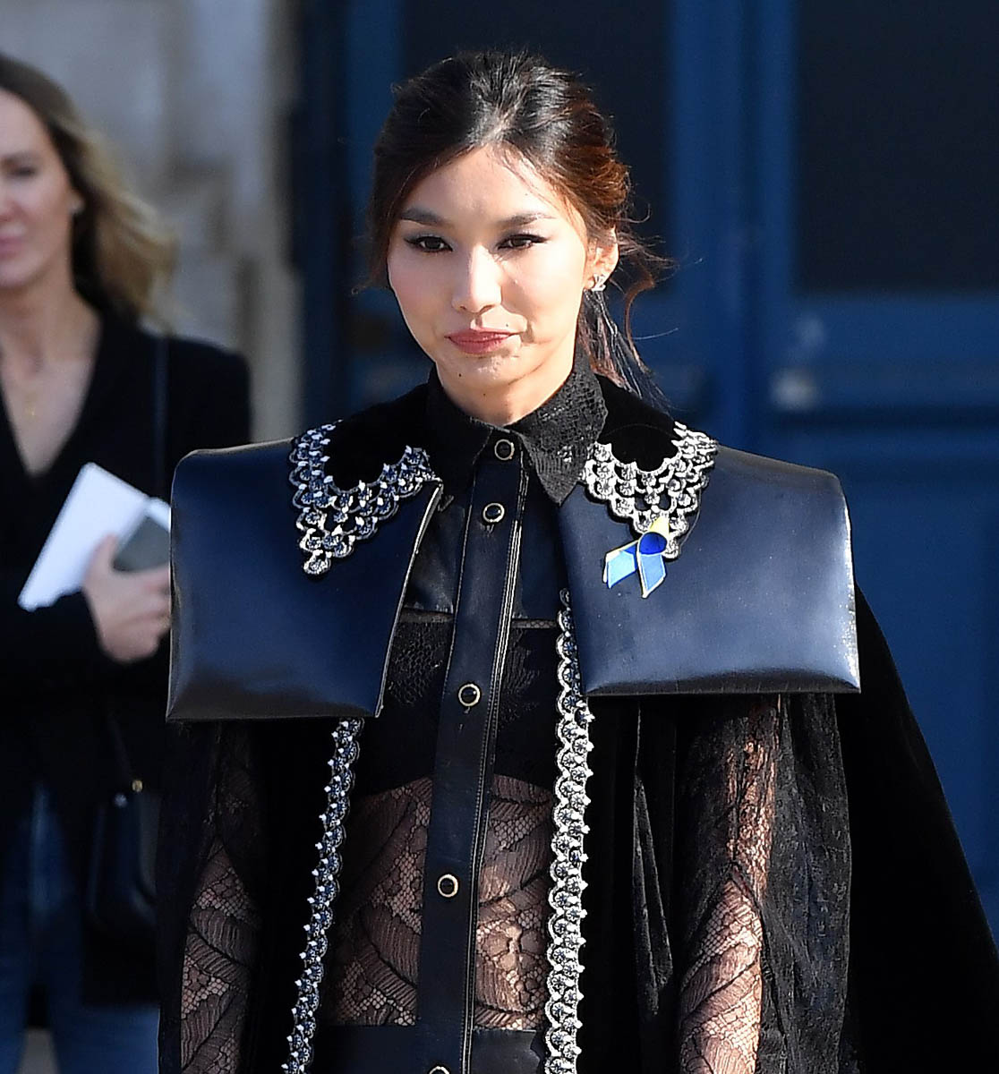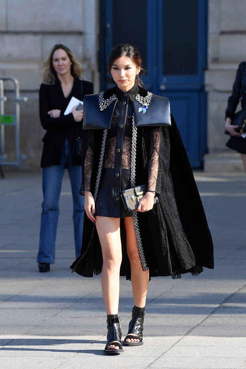 Gemma Chan was also wearing the sandal-booties today as the finishing touch to what might be the standout look among all celebrities at Louis Vuitton. LOOK AT THIS MASTERPIECE:
