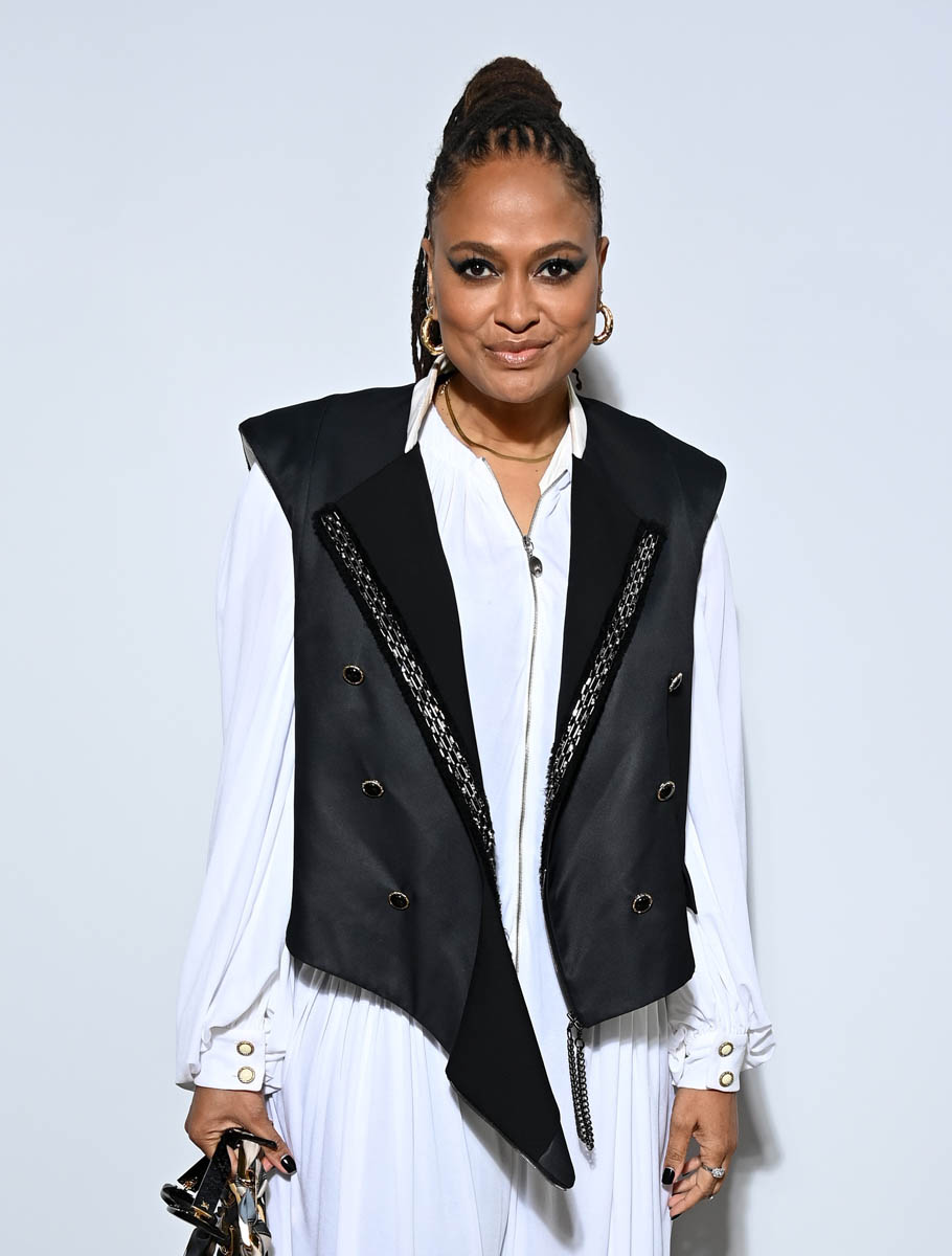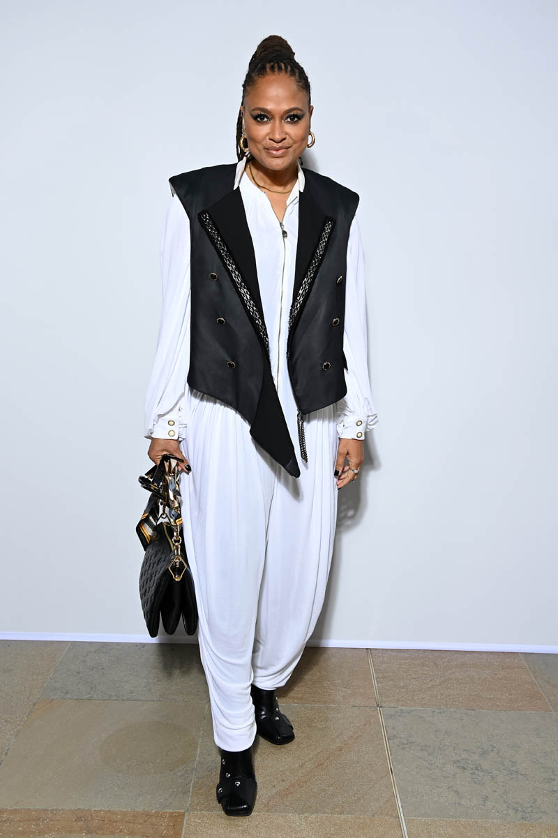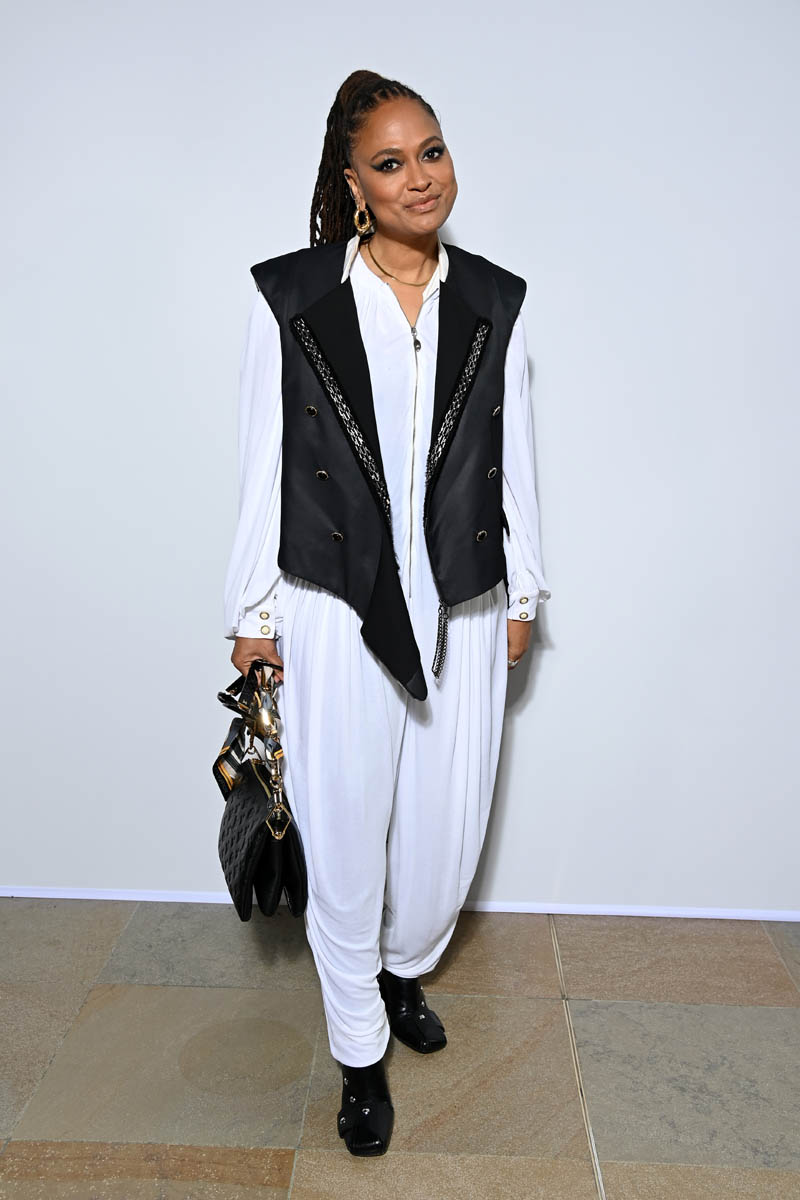 But we’re not done with the big name attendees. Ava DuVernay was an LV guest too – in a white jumpsuit under a leather vest, also excellent: