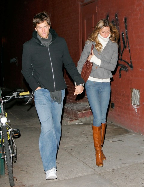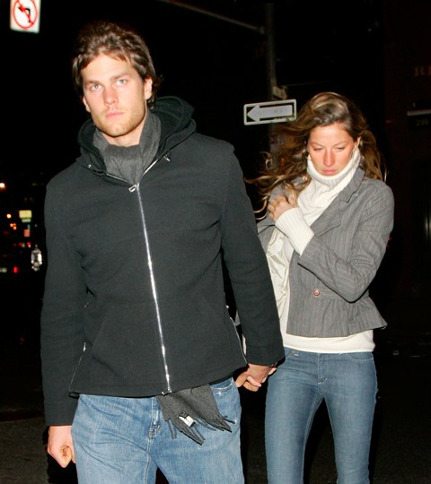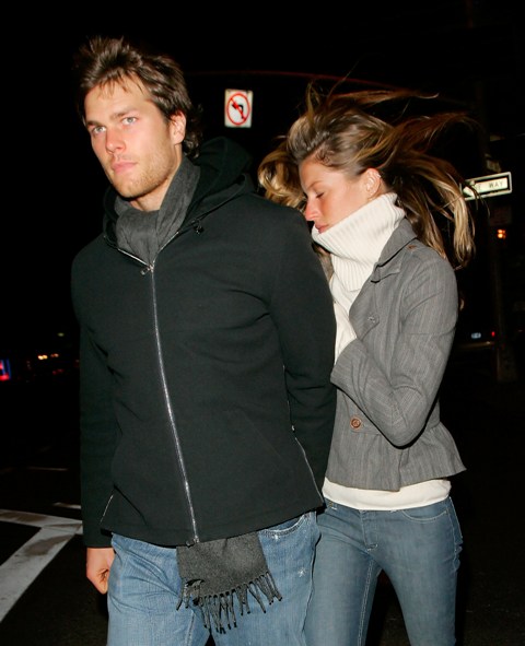 Here are Tom Brady and Gisele Bundchen out in NYC last night. Look at them. Look at him. Look at her! That shot of her turning her face away against the wind…she’s not posing and it looks like she’s posing!