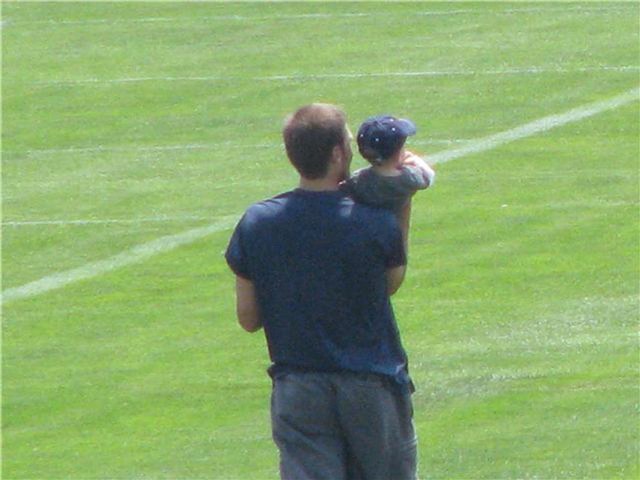 Check it out – Tom Brady and Gisele Bundchen with his son John Edward enjoying a little family time on the field at Gillette Stadium today. The cutest.