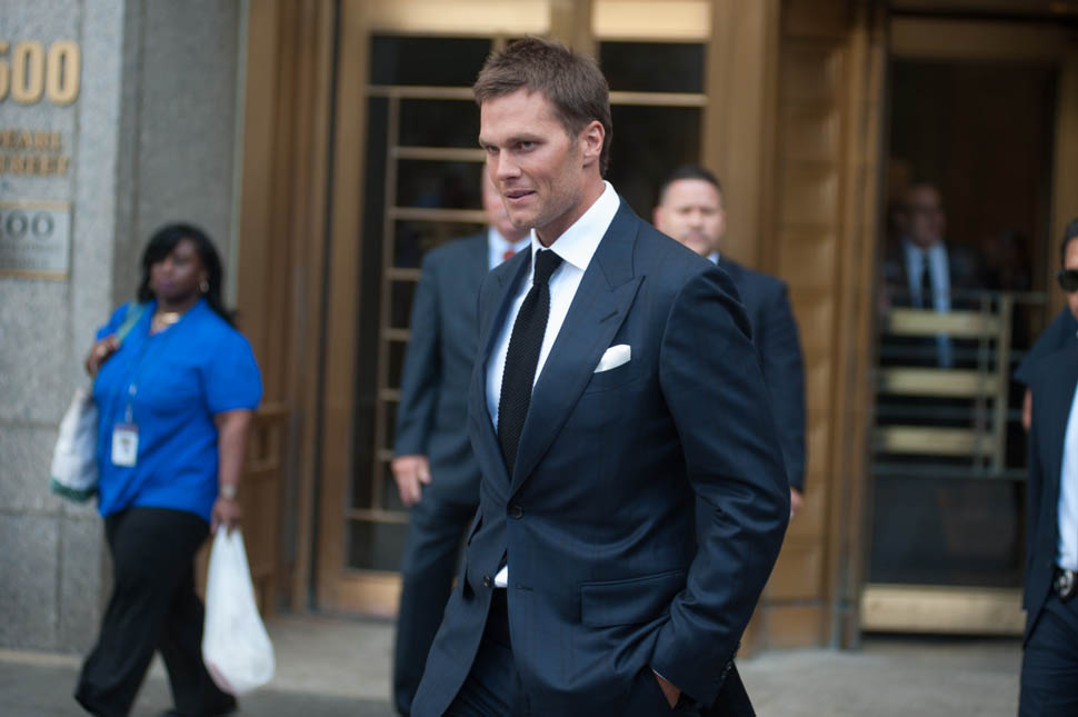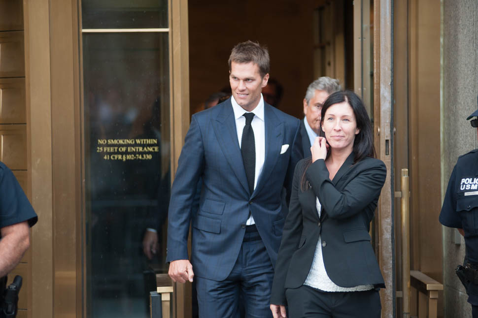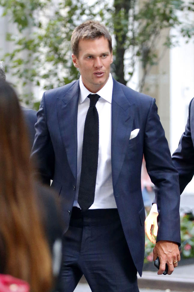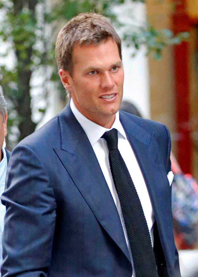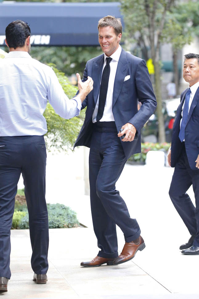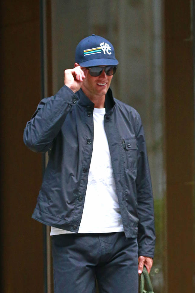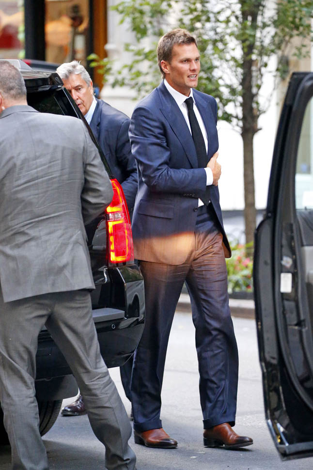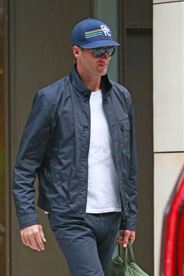 Check out Tom Brady in New York yesterday after his hearing – he’s appealing the NFL suspension after Deflategate – and then later on in the evening he stepped out in casual clothes, looking relaxed and confident under a baseball cap.