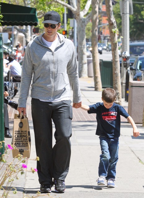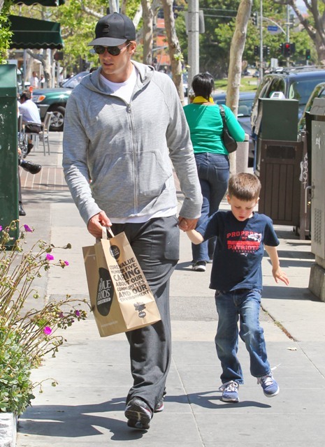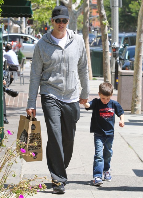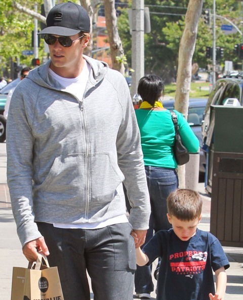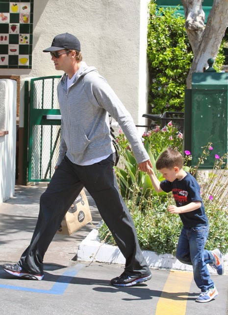 Tom Brady was photographed at Whole Foods in Brentwood yesterday with his son Jack. Gisele wasn’t around, or at least she wasn’t shot. You all remember the sh-t she took after the Super Bowl, right? Shortly after, Tom and Gisele went on holiday to Puerto Rico. Click here to see the photos. You’ll note in those pictures he’s not wearing his wedding ring. And yet they are very, very clearly together.
