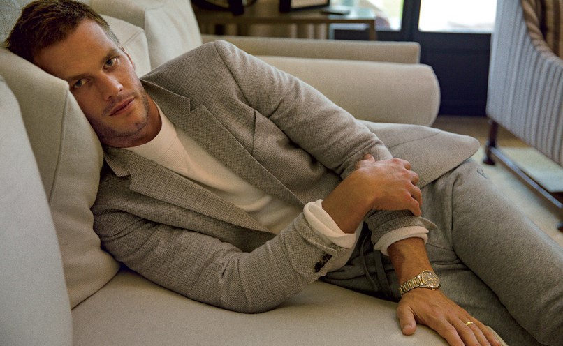 But if that’s the case, I get to nitpick. The GQ shoot happened at Brady’s home in Brookline. There’s a video. No doubt, he looks great in the photos (except there’s something super weird about his legs here)…