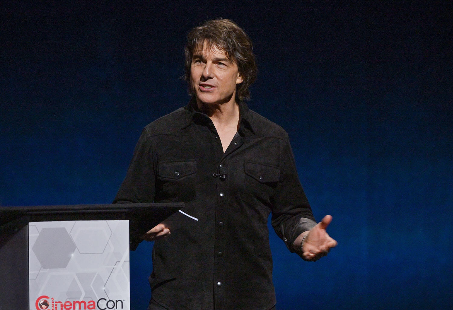 What I love about Tom Cruise at CinemaCon is that every photo looks like he’s giving a motivational speech, which in a way, he is. What I don’t love is that haircut. We are in year three of Tom Cruise’s deeply tragic hair.