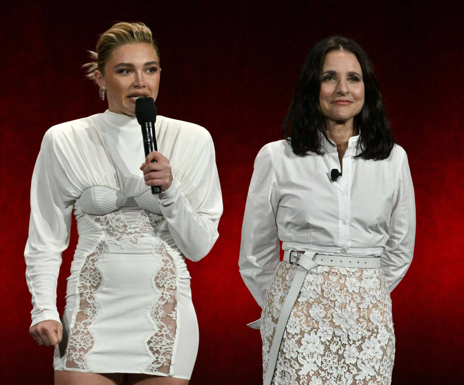 The day concluded with Disney-Marvel’s presentation, which included Jeremy Allen White and Jeremy Strong for the Bruce Springsteen biopic, Deliver Me From Nowhere; Ke Huy Quan for Zootopia 2; Lindsay Lohan and Jamie Lee Curtis for Freakier Friday; and the Thunderbolts—minus Sebastian Stan but plus Julia Louis-Dreyfus—for Thunderbolts*. Marvel continues going big for Thunderbolts*, doing a stunt arrival with the Red Guardian limo, and having the team enter the theater like they were prying Wyatt Russell away from the tables.