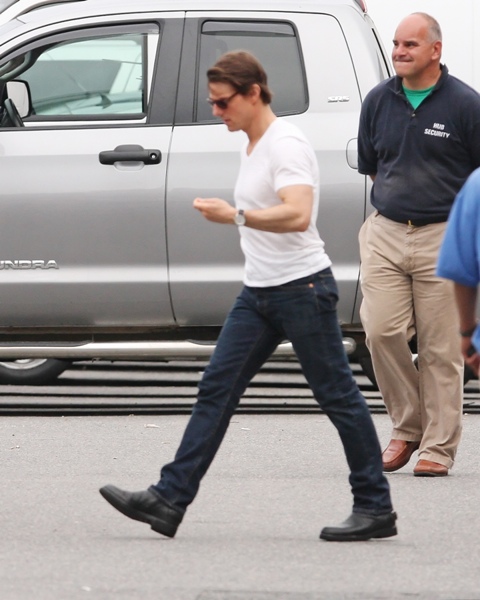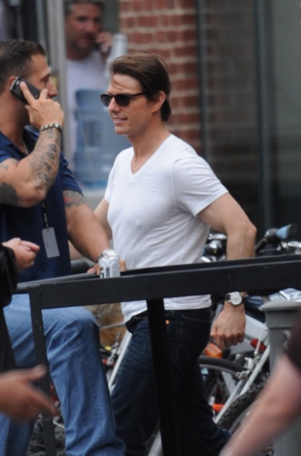 In Boston shooting Wichita. Tom Cruise actually has good hair right now. I like it. It’s, um, the chest area that poses a problem.