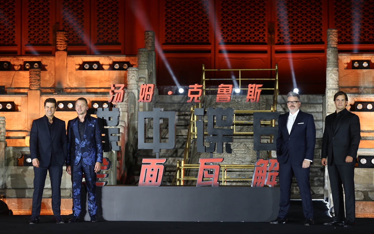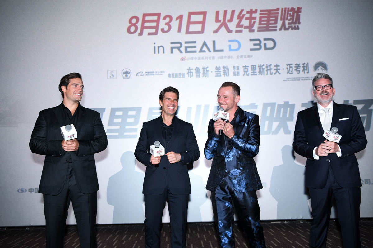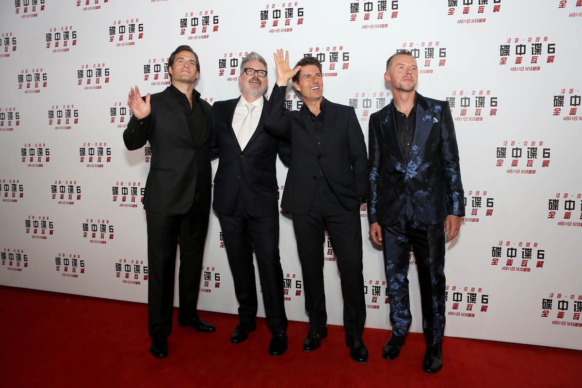The Mission Impossible: Fallout press tour is still happening and it still needs 100% more Angela Bassett. And where’s Ving Rhames? Without both, we have to settle for Tom Cruise, Henry Cavill, and Simon Pegg. Their most recent stop on the M:I - Fallout tour was Beijing on Wednesday. The next best thing to Angela Bassett is Tom and Henry showing up in virtually identical suits and playing Photo Assumption about who can pose harder/act taller.