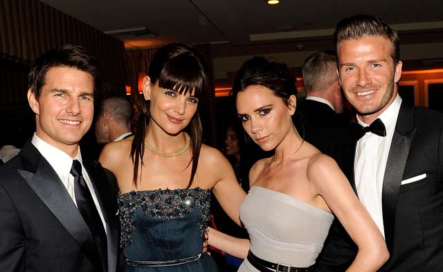 While inside Tom and Katie hilariously spent time with their old friends the Beckhams. David looks like he’s surrounded by crazy people doesn’t he?