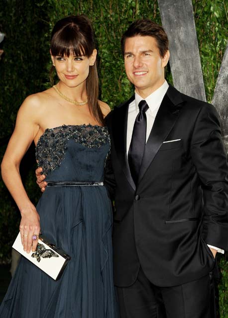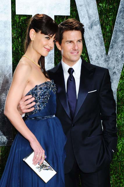 Right after the show, Tom took Katie to Vanity Fair. The Presentation wasn’t so prominent this time. But they did match royal blues. Check out Katie in Elie Saab... and a fringe. Terrible idea. Immediately it becomes a beauty pageant.