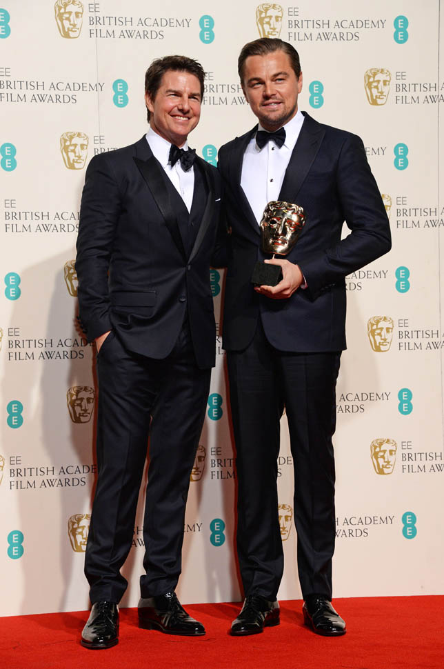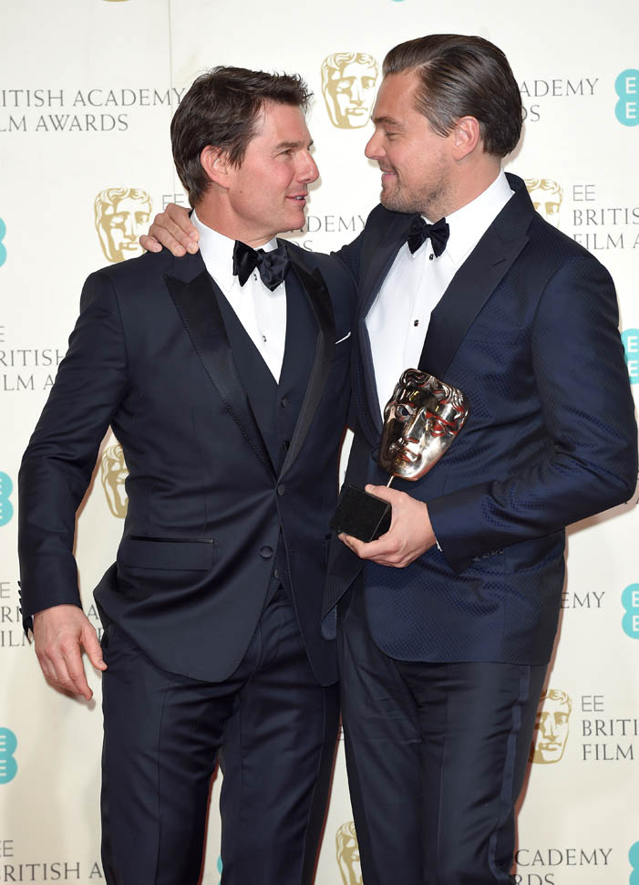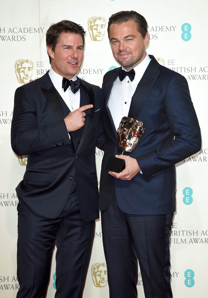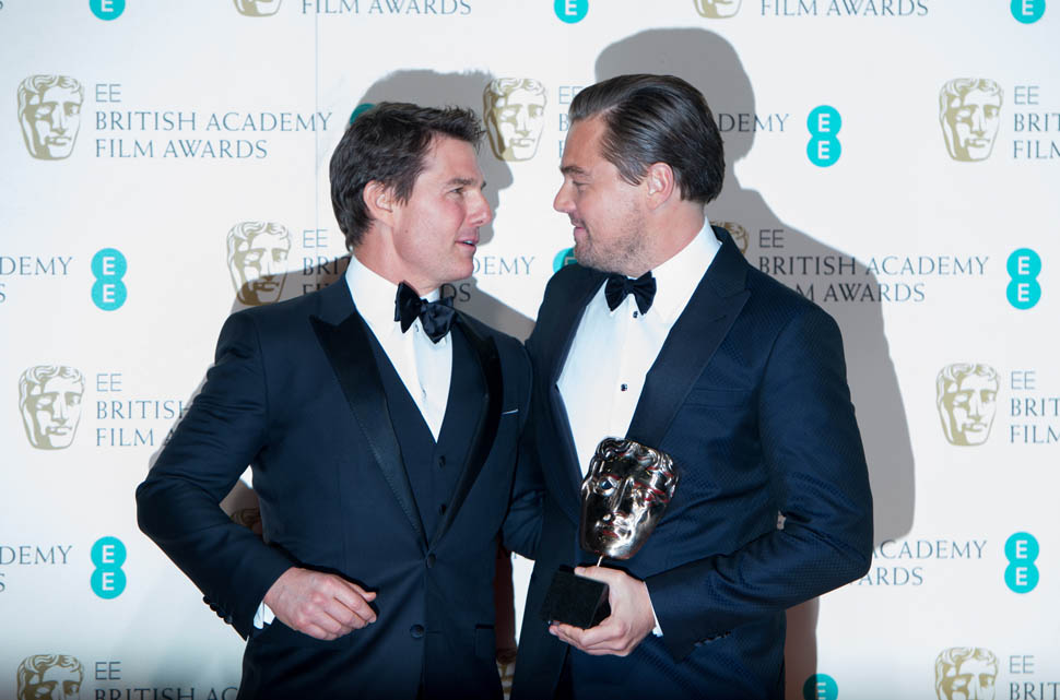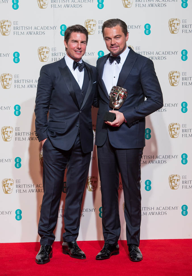 Tom Cruise and Leonardo DiCaprio. Have they ever posed together before? I’m sure they’ve been in the same room. But standing side by side before a wall of photographers…