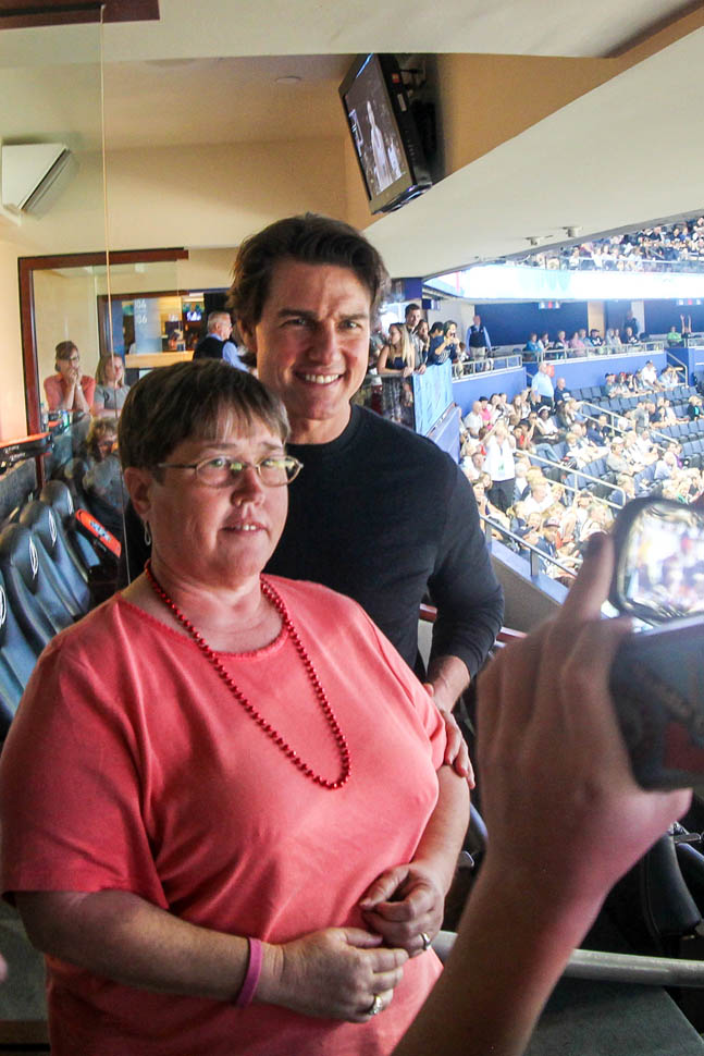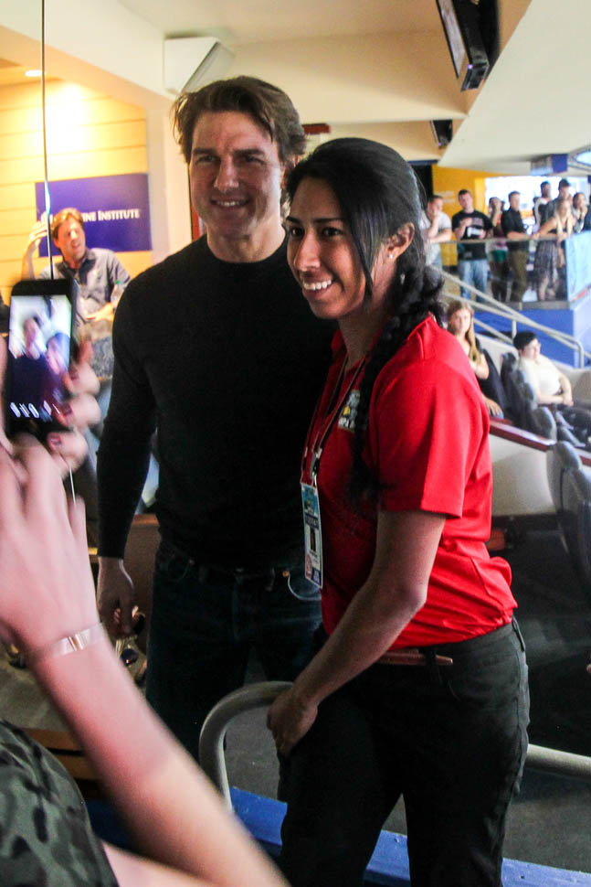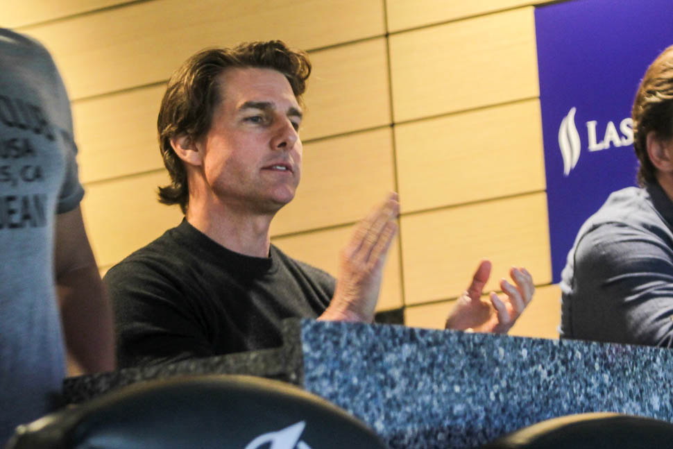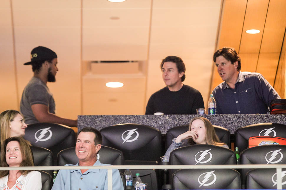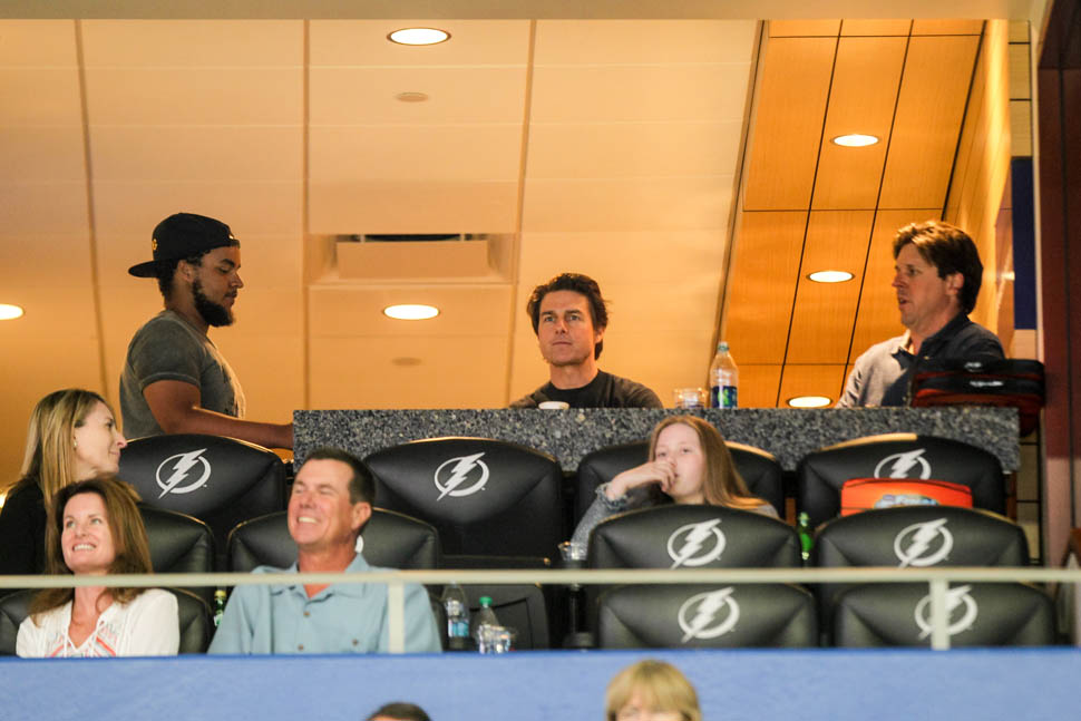 Tom Cruise and son Connor were in Tampa, Florida last night watching the NCAA Women’s Final Four Semi featuring Maryland and Connecticut. Tom’s been in London for several months working on Mission: Impossible Rogue Nation. The movie opens July 31st. So I hope they’re done shooting. Because that doesn’t leave a lot of time in post.