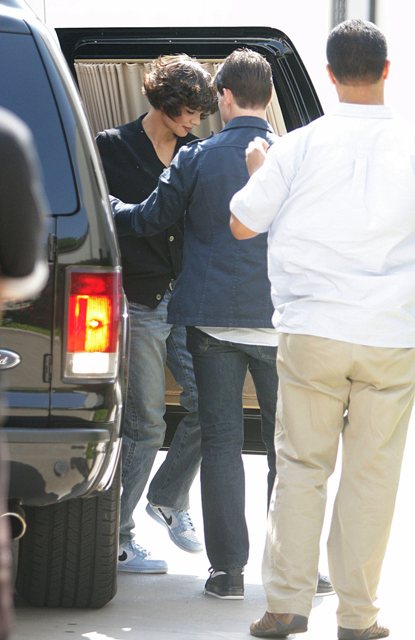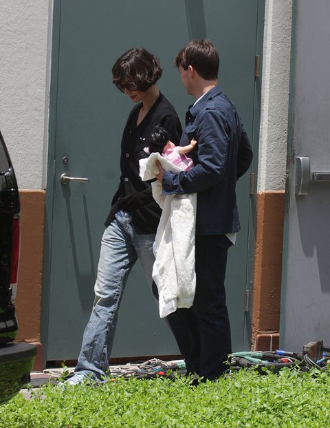 Katie Holmes was on set at Eli Stone yesterday to shoot a cameo – the Tom Cruise brought Little Sci to visit mom at work. And also to check up on her, making sure there’s no secret getaway plan. After all, Johnny Lee Miller was once married to Angelina Jolie. And Johnny Lee Miller is infinitely sexier than Tom.