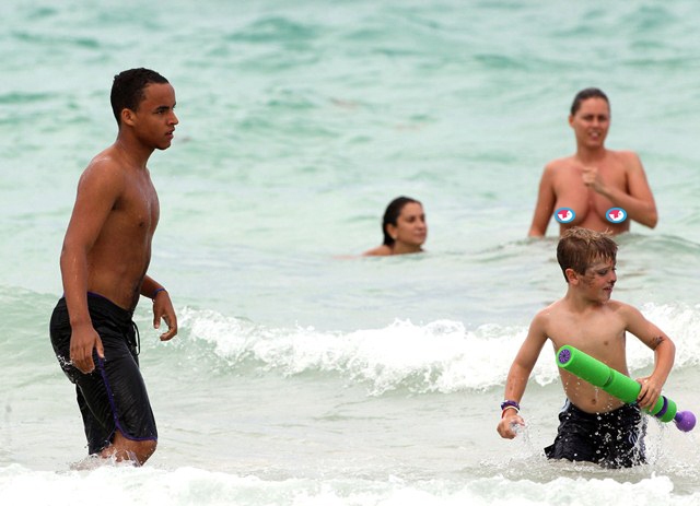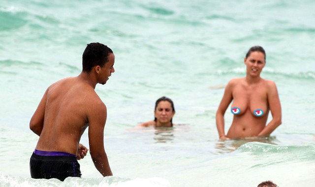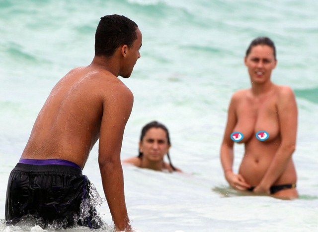Anyway, Connor decided to go for a swim. Apparently this is a topless beach. And some broad was taking full advantage, while straight up right up in his face, and, um...adjusting herself?