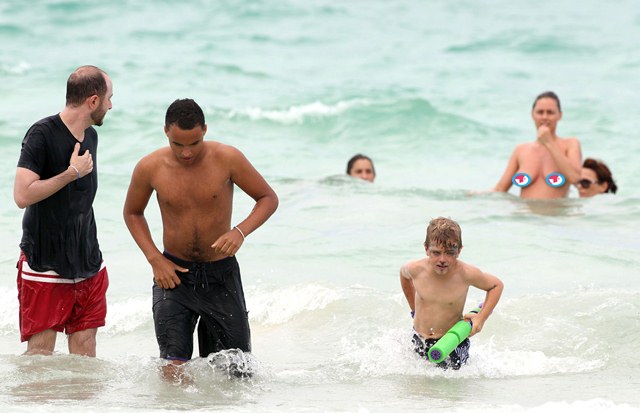 Tom Cruise celebrated his 49th birthday yesterday in Miami wearing his favourite hat. He was joined by wife Katie, who threw him a surprise party, and two of his three children, Little Sci Suri, and son Connor who, as I’ve noted before, bears resemblance to his father, and yes know-it-alls, I am aware that he is adopted (!!!) but can a bitch say there’s a resemblance without suggesting they’re biologically connected? Fack!