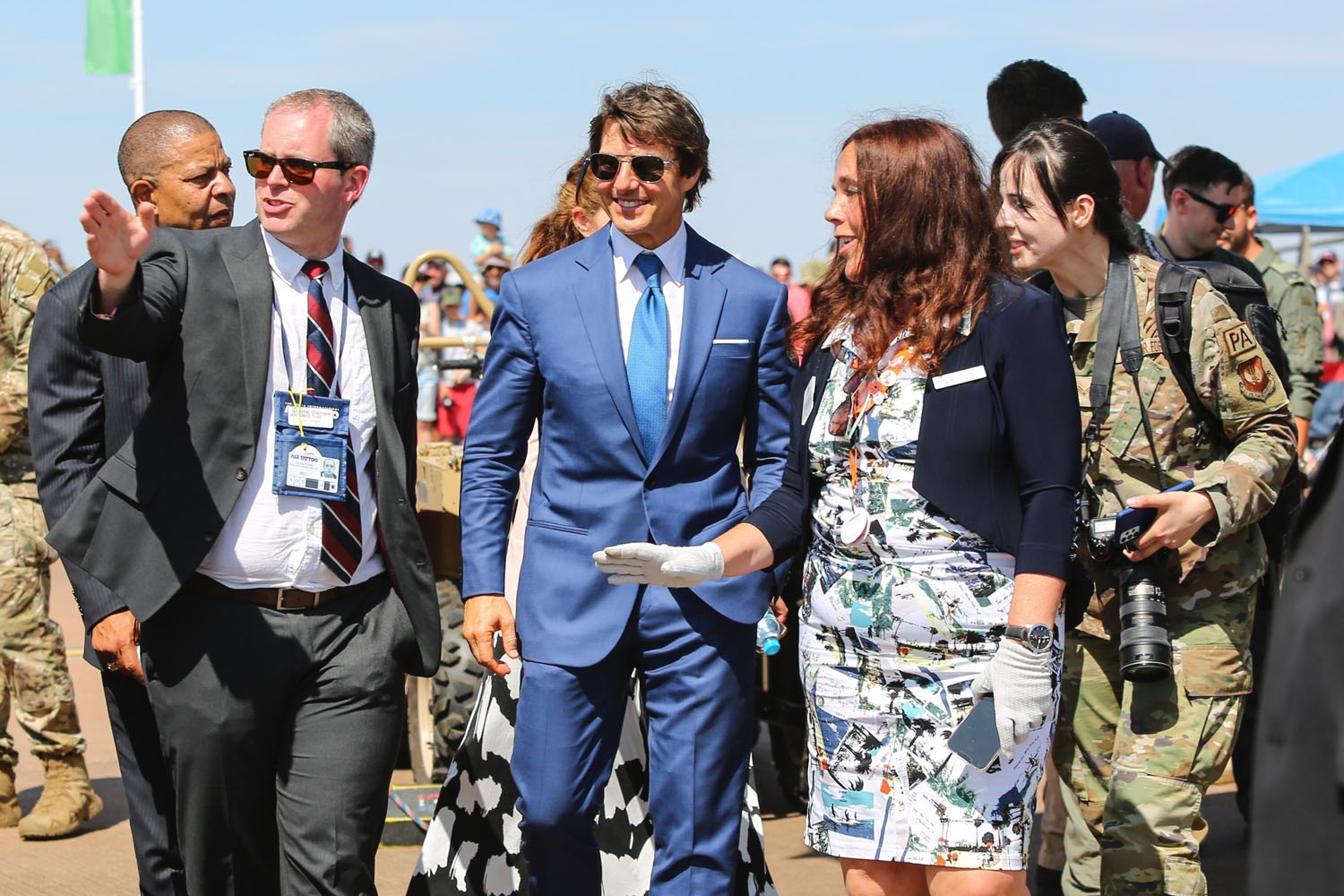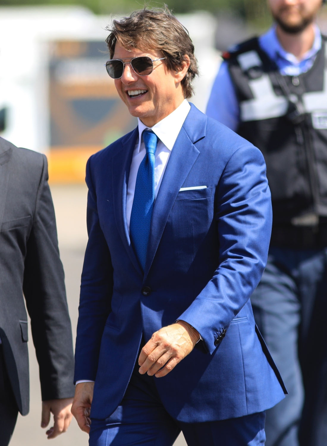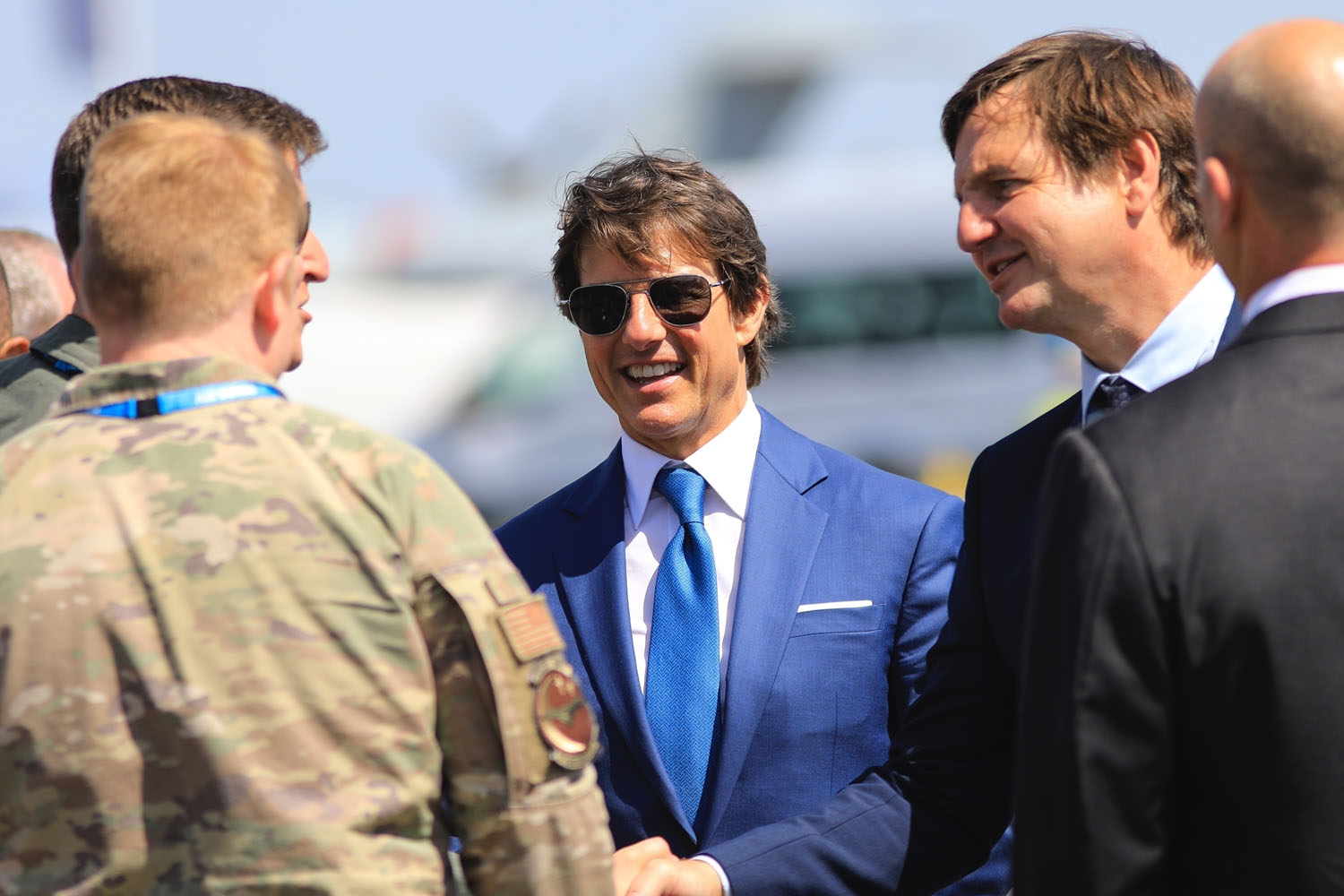So he continues to celebrate, stepping out in London last night for dinner in a shiny short-sleeved shirt and previously on the weekend at the Royal International Air Tattoo in Gloucestershire as there are reportedly now talks in place to make another Top Gun movie. Well, of course there are. When has Hollywood ever not wanted more… MONEY?!