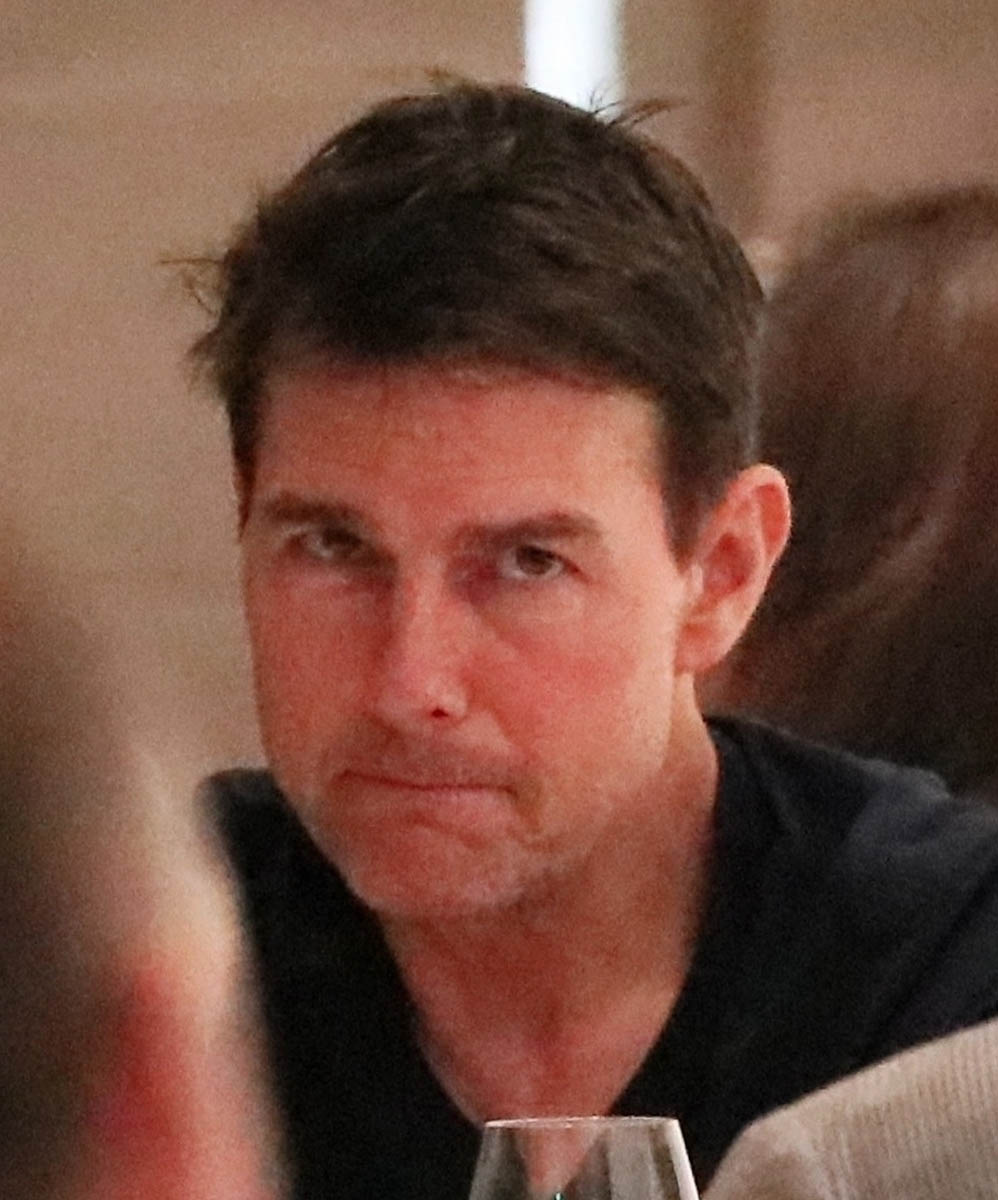 We already know that Tom Cruise doesn’t half-step…at anything. Not when he’s running, not when he’s jumping, not when he’s kissing, and not even when he’s having dinner. He is having the SH-T out of this dinner. Right? Have you ever seen anyone more engaged at dinner than Tom Cruise at dinner?