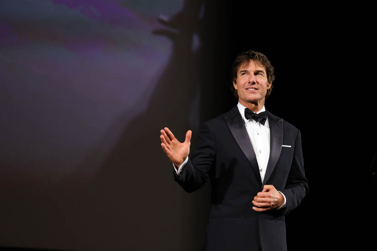Nobody needs to justify why Tom Cruise deserves an award from a festival that celebrates cinema. He is one of the greatest movie stars of all time, and any discussion about the history of cinema would be incomplete without him. But also, he’s basically being established as the hero of all movies at this point. Or, more specifically, the hero of movies at the movie theatre. Tom Cruise will save the theatrical experience! No one is sure if he actually will but who’s going to argue when he sets his jawline to it? You know the famous Tom Cruise jawline flex – and if you’ve forgotten, you’ll be reminded of it once you see Top Gun: Maverick because it’s practically its own character. Please don’t think I’m complaining about the jaw flex, because I’m not. I have seen Top Gun: Maverick, and I’m about to see it again, and I’ve already told you how much I thoroughly enjoyed every minute of the movie. And I had no choice! Not when Tom Cruise is that determined to fly me away for two hours into his world of death-defying stunts and high-altitude exhilaration and shirtless lubed up hardbodies on the beach!