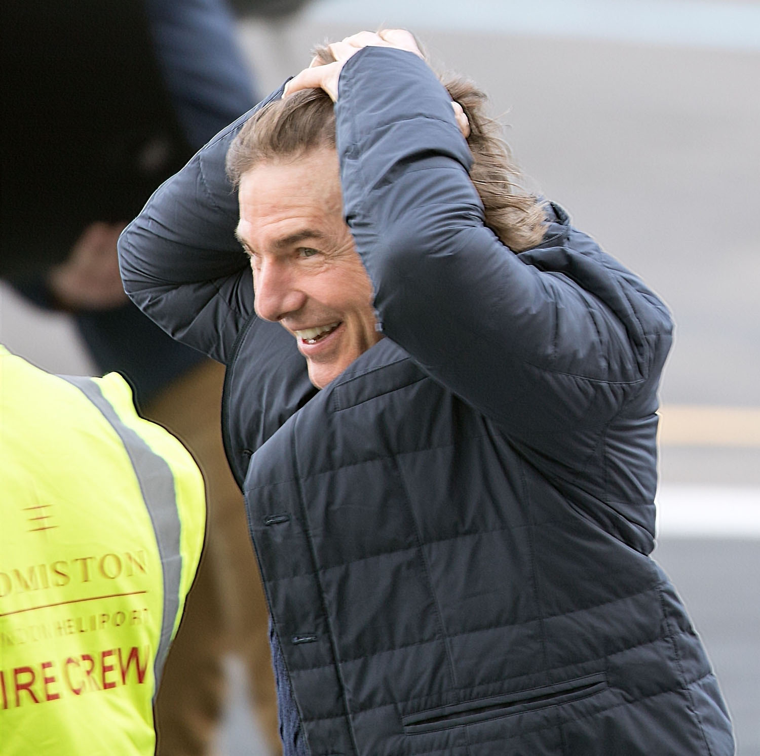 But now that the strikes are over, Tom Cruise is once again (fake) saving the world. Here he is arriving at London’s Battersea Heliport to get back to work, flashing his movie star smile and laughing with his fellow pilot. Back to business as usual for Tom, though he recently did something unusual and showed up to his agency, CAA, in person to support his agent, Maha Dakhil, after she came under fire for sharing social media posts about the conflict in Israel and Gaza that were deemed antisemitic. She lost positions within CAA, such as co-head of the motion picture department, though she remains as an agent, presumably thanks in no small part to Cruise’s personal intervention.