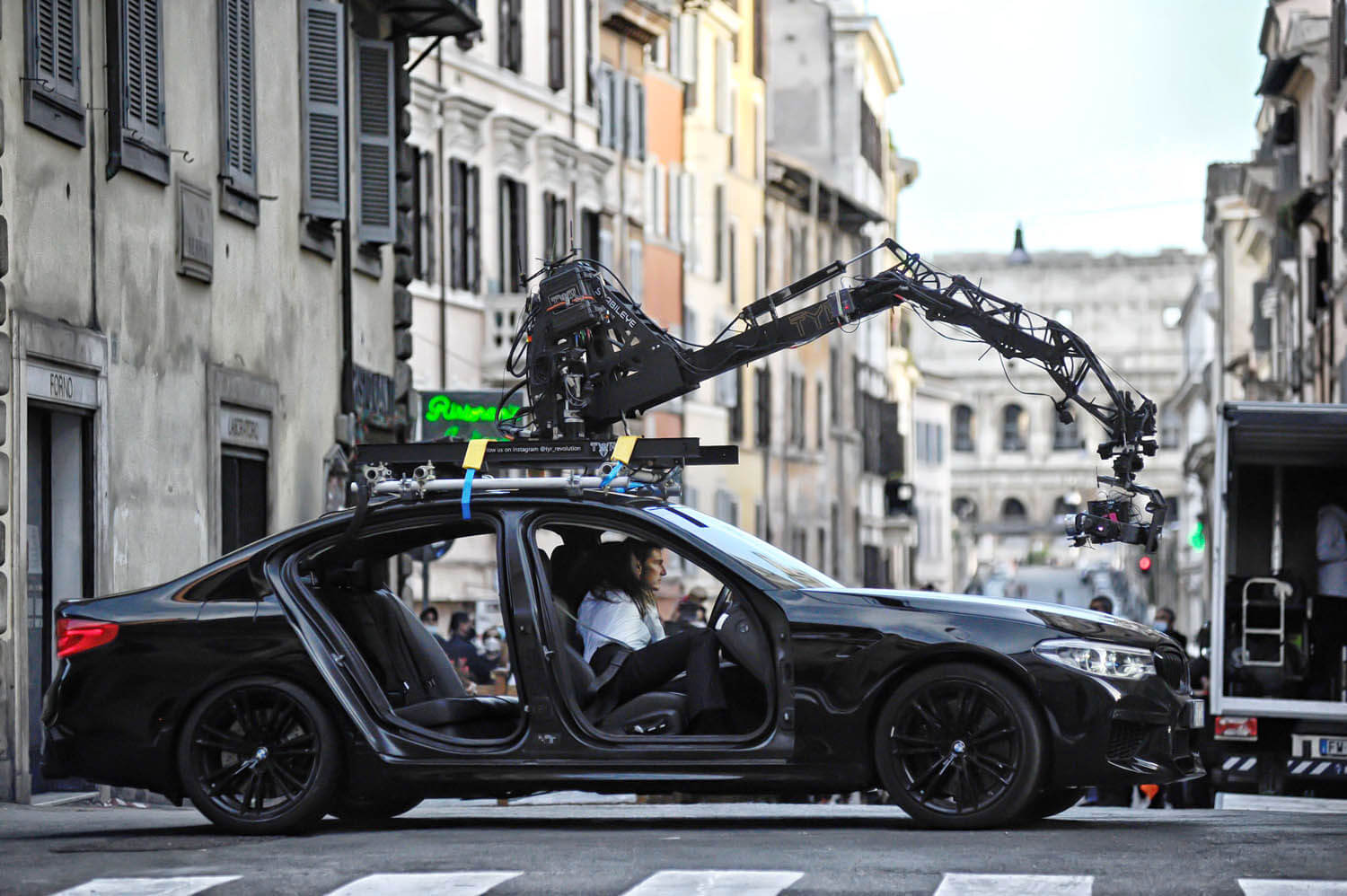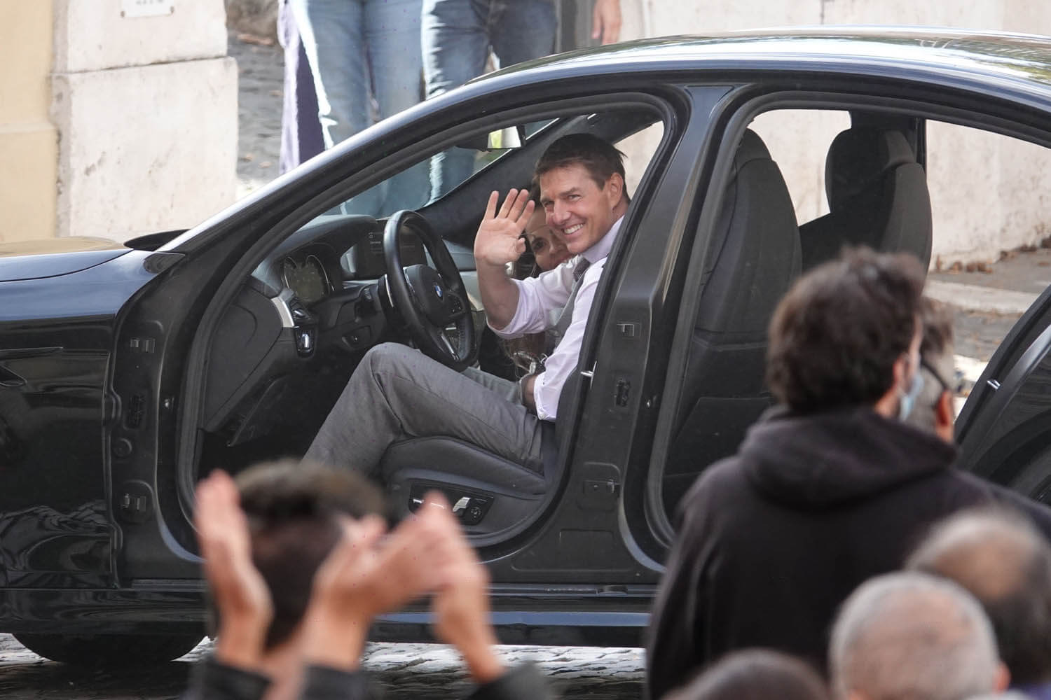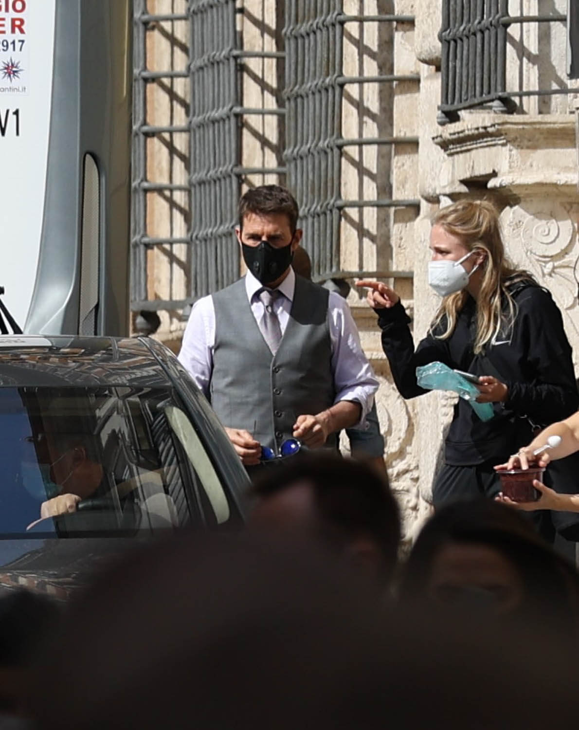After shooting on a train the other day in Norway, Mission: Impossible 7 production has moved to Italy and here are Tom Cruise and Hayley Atwell shooting a car chase scene – what kind of other scene would it be involving a vehicle where Tom Cruise is concerned? It’s never going to be an easy breeze of a ride! – where they’re handcuffed together.