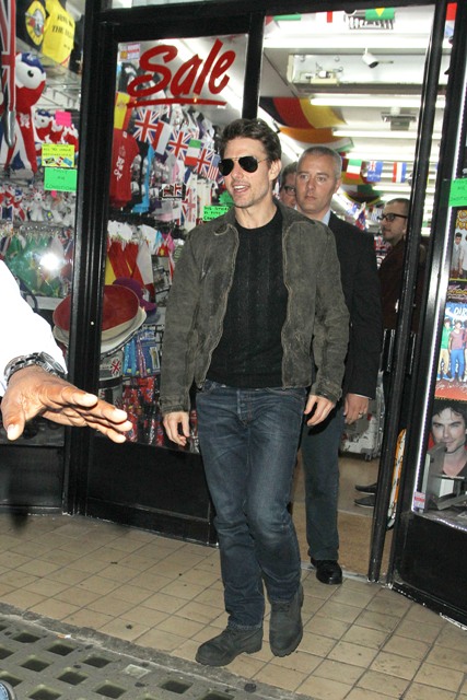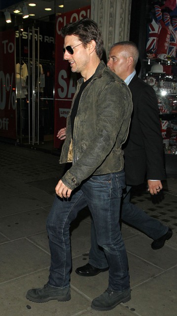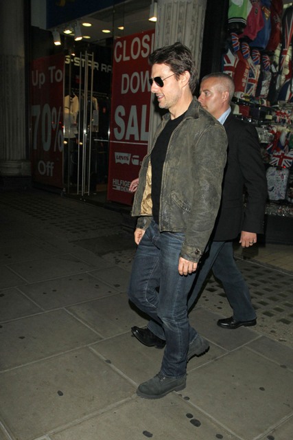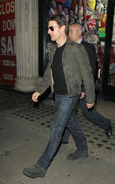 As we all marvel at Katie Holmes’s lack of greed and Single Mother Courage, Tom Cruise is over in London working on a new movie. He was out last night to support son Connor who DJ’d a set at China White. Dad, please don’t dance, please don’t dance.