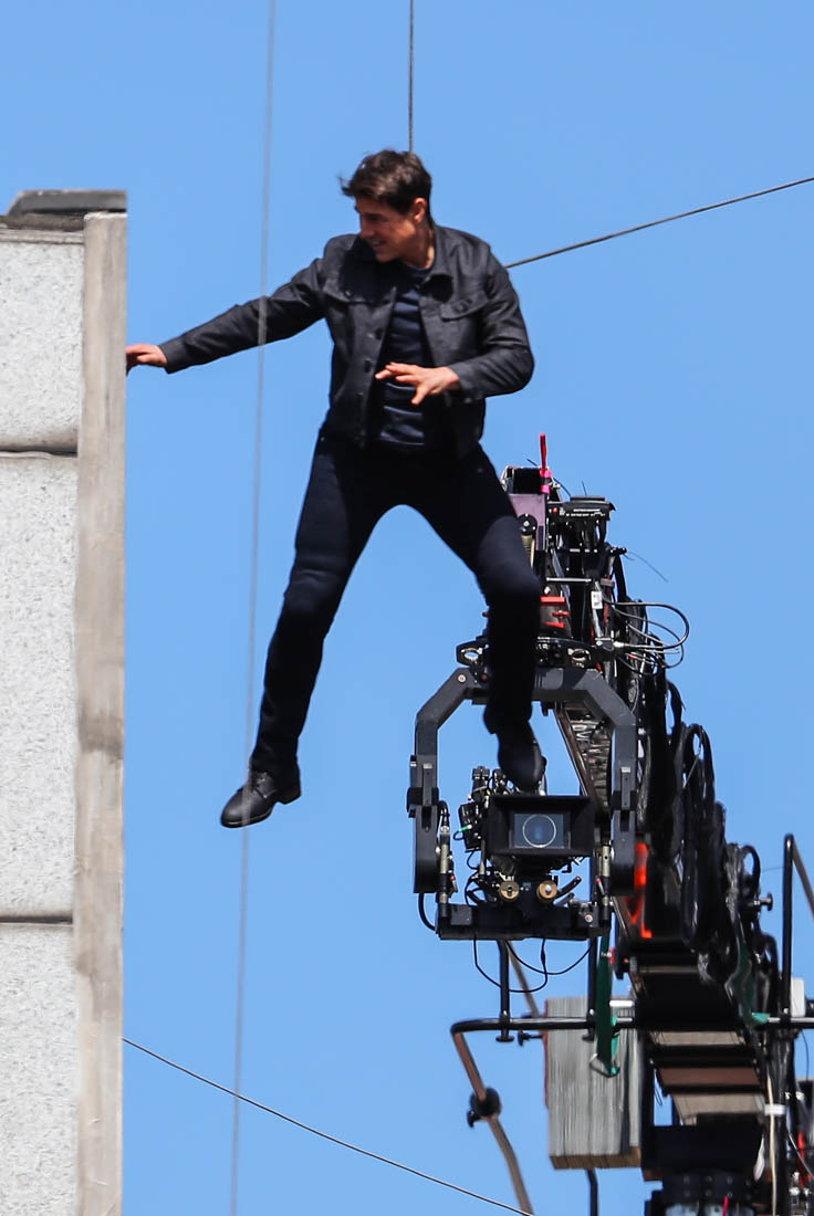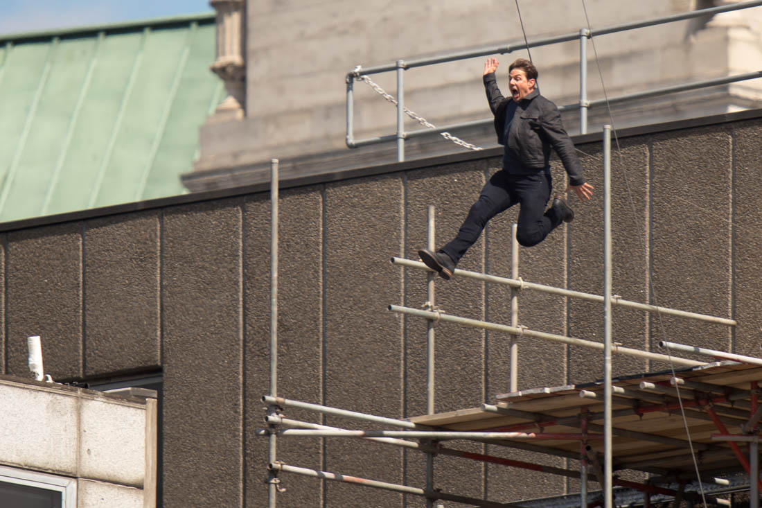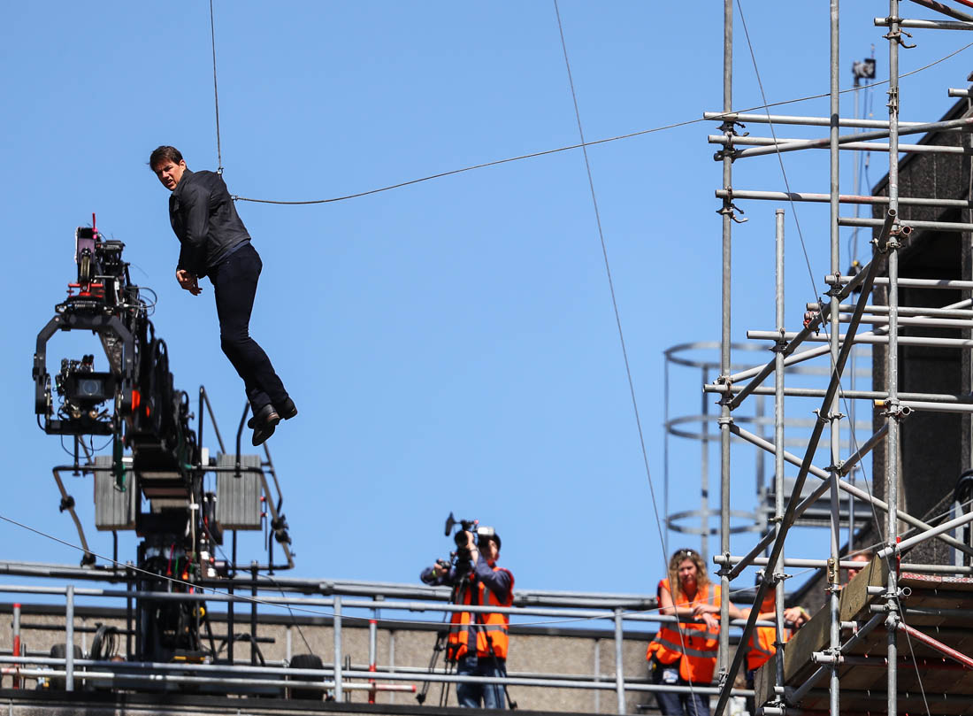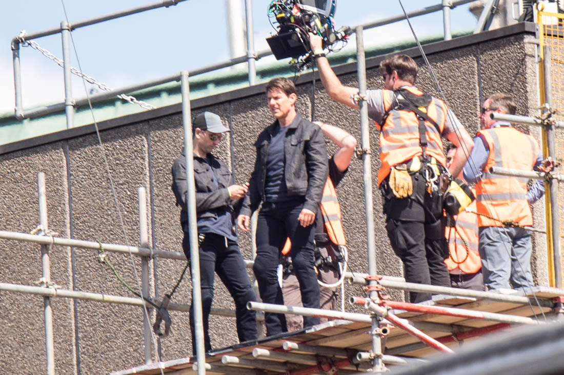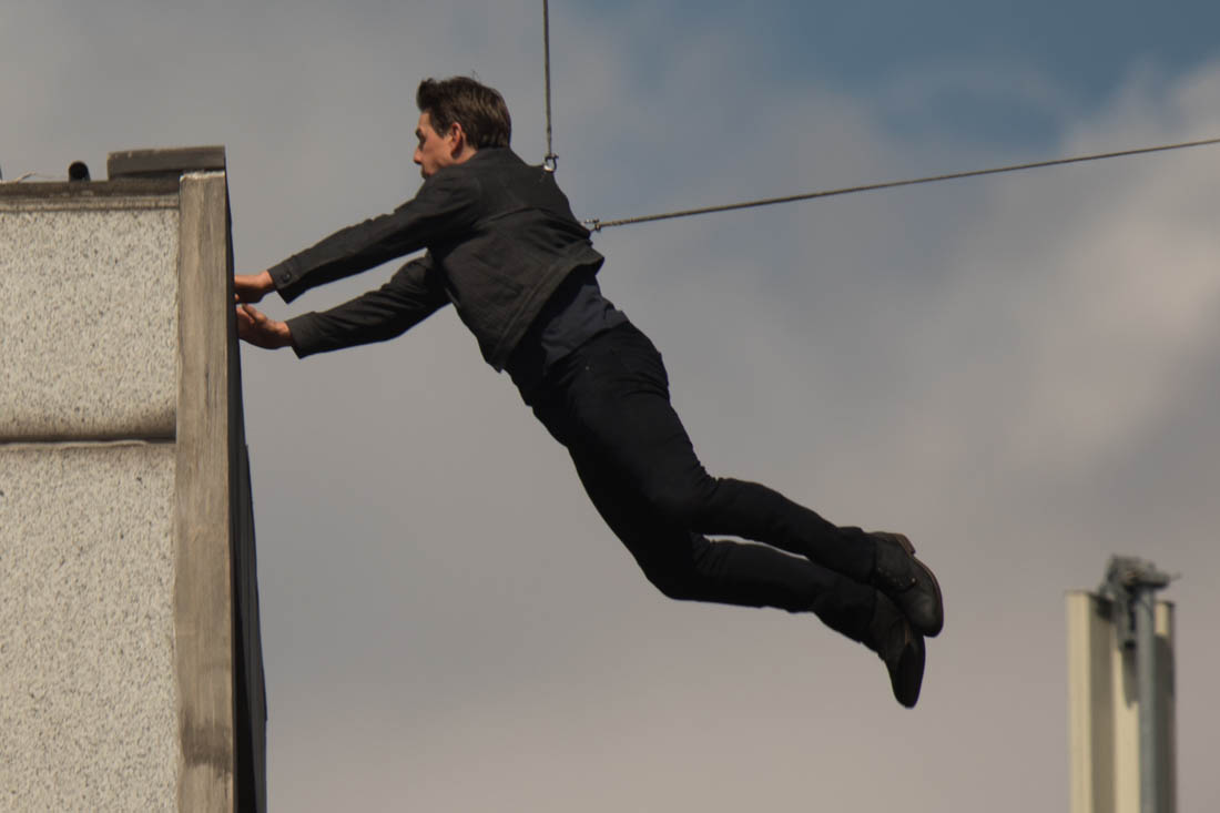 Tom Cruise was shooting Mission: Impossible 6 this weekend. For one particular scene he was attached to a harness and had to jump from a scaffold onto the roof of another building. As we all know, Tom does most of his own stunts. That’s one of his trademarks. He will be the one hanging off the side of the tallest building in the world. He will be the one to dangle off the side of a moving airplane. TMZ reports that he tried the stunt at least twice because evidently he wasn’t making the leap clean. As you can see in this video, he hits the wall hard and then comes up limping: